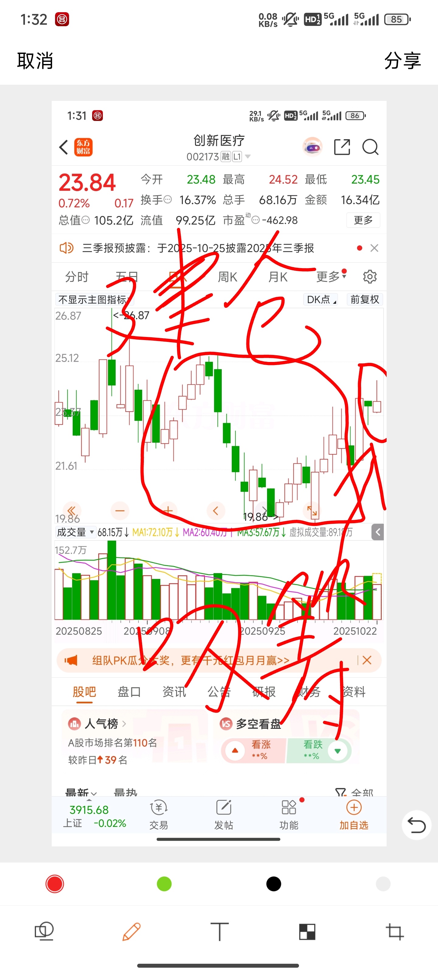 $创新医疗(SZ002173)$ 昨天今天两天都是吸筹 今天分时 两头高 杠铃趋势吸筹明天很有可能拉升主升浪