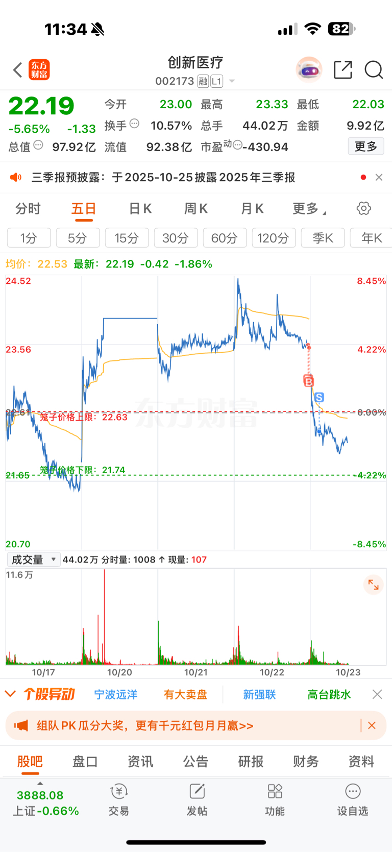 $创新医疗(SZ002173)$ 对自己真无语了,昨天尾盘卖进,今天干赔5个点清仓了!赔了1.7万!好生气
