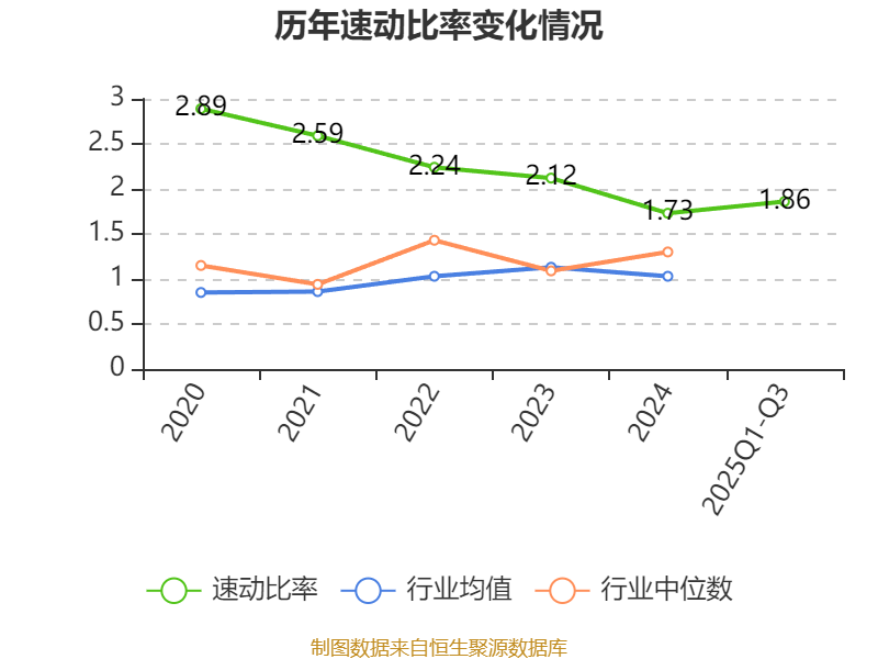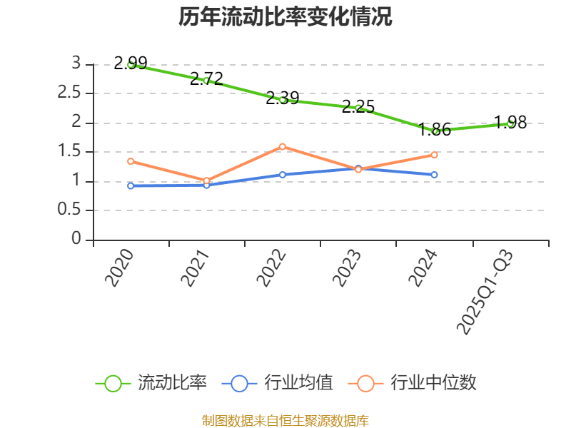 2025年前三季度,公司流动比率为1.98,速动比率为1.86。