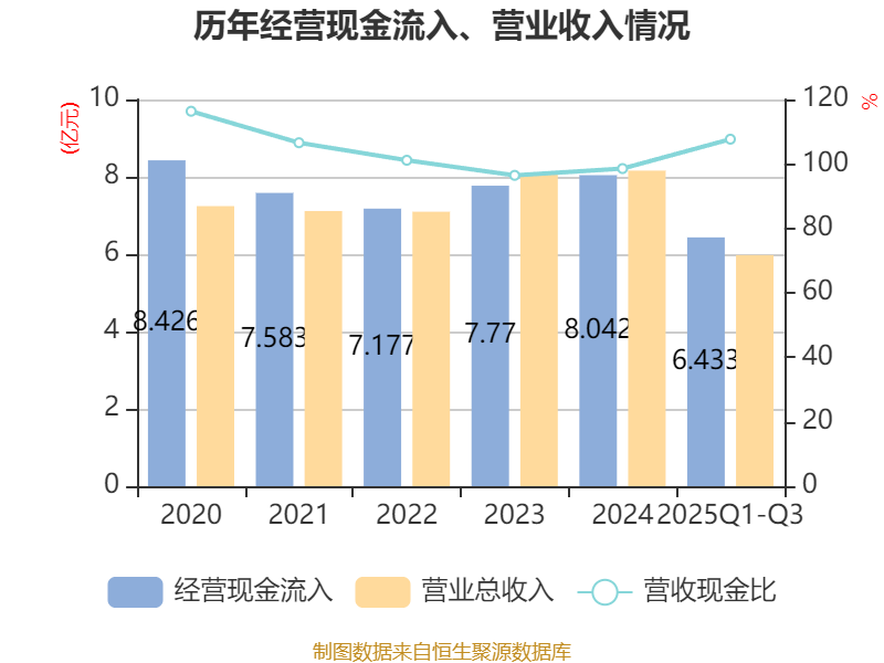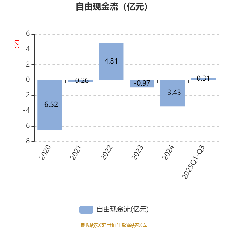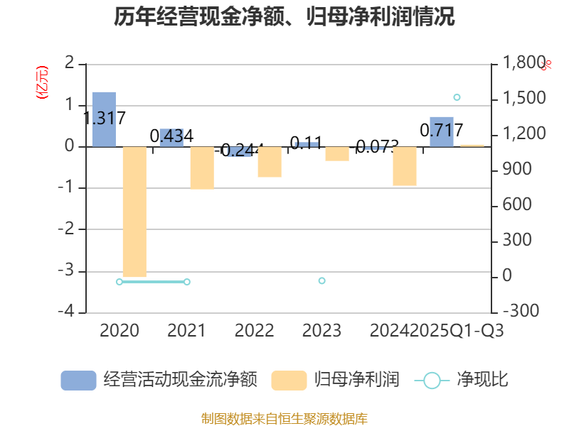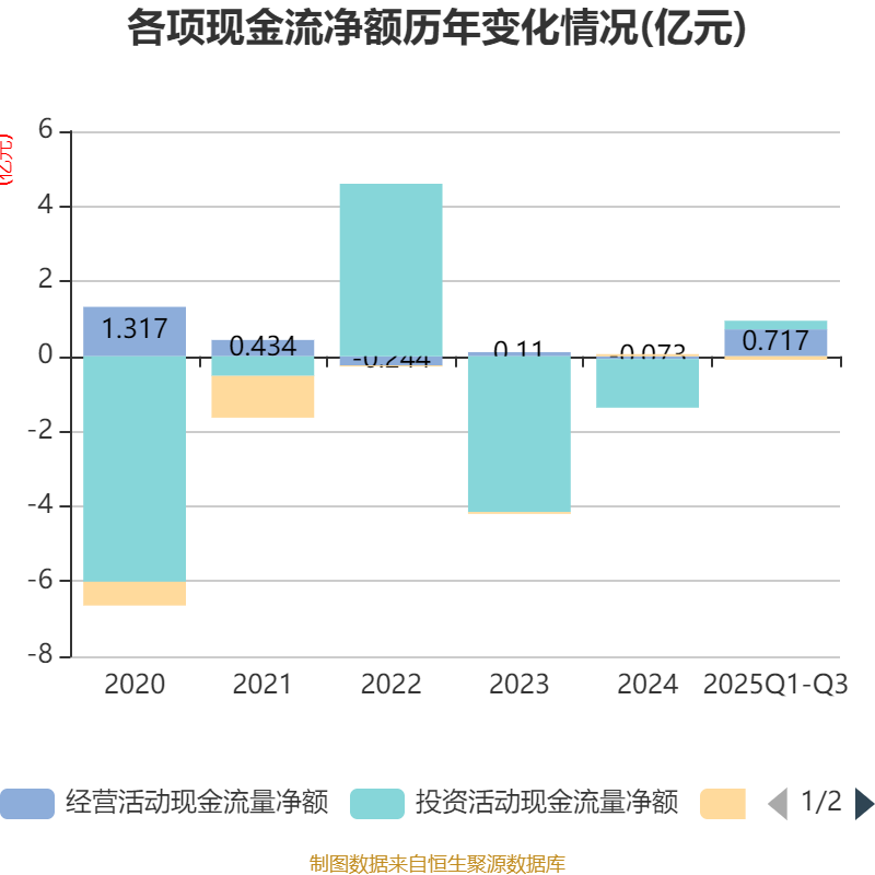 2025年前三季度,公司经营活动现金流净额为7172.42万元,同比增长358.63%;筹资活动现金流净额-944.44万元,同比减少1744.06万元;投资活动现金流净额2304.32万元,上年同期为-1.06亿元。