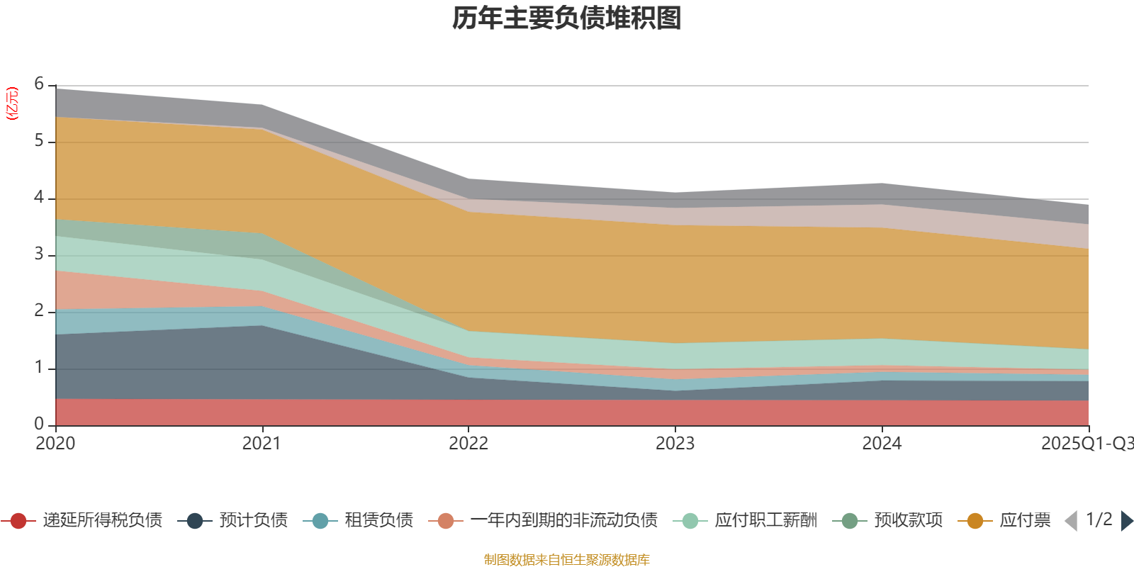 负债重大变化方面,截至2025年三季度末,公司应付票据及应付账款较上年末减少9.36%,占公司总资产比重下降0.73个百分点;应付职工薪酬较上年末减少23.21%,占公司总资产比重下降0.48个百分点;租赁负债较上年末减少26.61%,占公司总资产比重下降0.18个百分点;一年内到期的非流动负债较上年末减少24.65%,占公司总资产比重下降0.13个百分点。