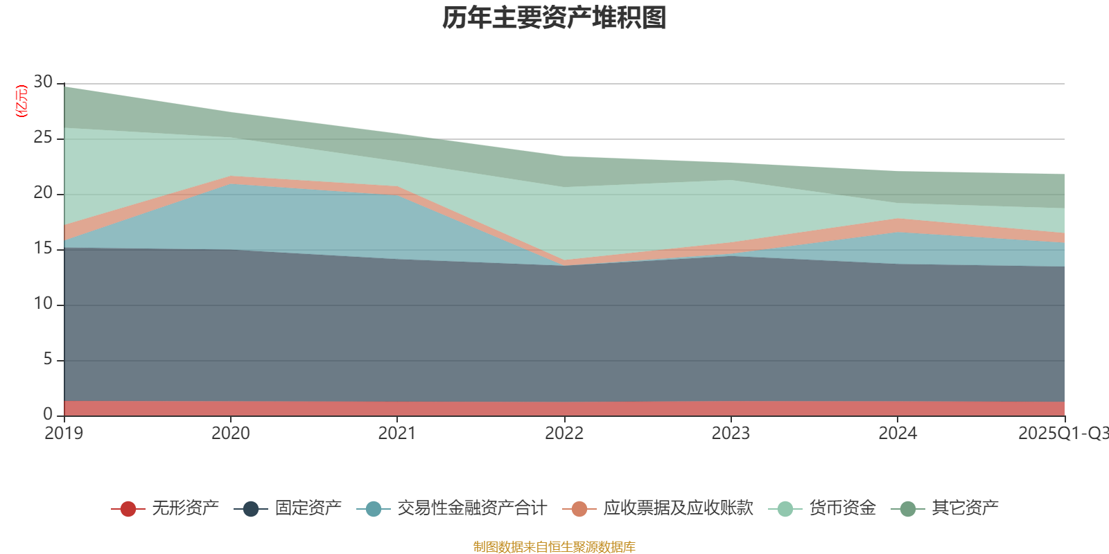 资产重大变化方面,截至2025年三季度末,公司货币资金较上年末增加61.5%,占公司总资产比重上升3.97个百分点;交易性金融资产合计较上年末减少25.43%,占公司总资产比重下降3.21个百分点;商誉较上年末增加5222.68%,占公司总资产比重上升2.37个百分点;应收票据及应收账款较上年末减少29.11%,占公司总资产比重下降1.59个百分点。