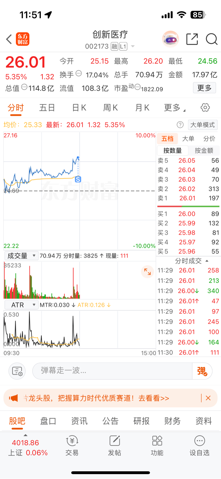 $创新医疗(SZ002173)$ 主力随便你怎么搞,减半仓安全点,你下午涨停我吃肉,你下来我在接