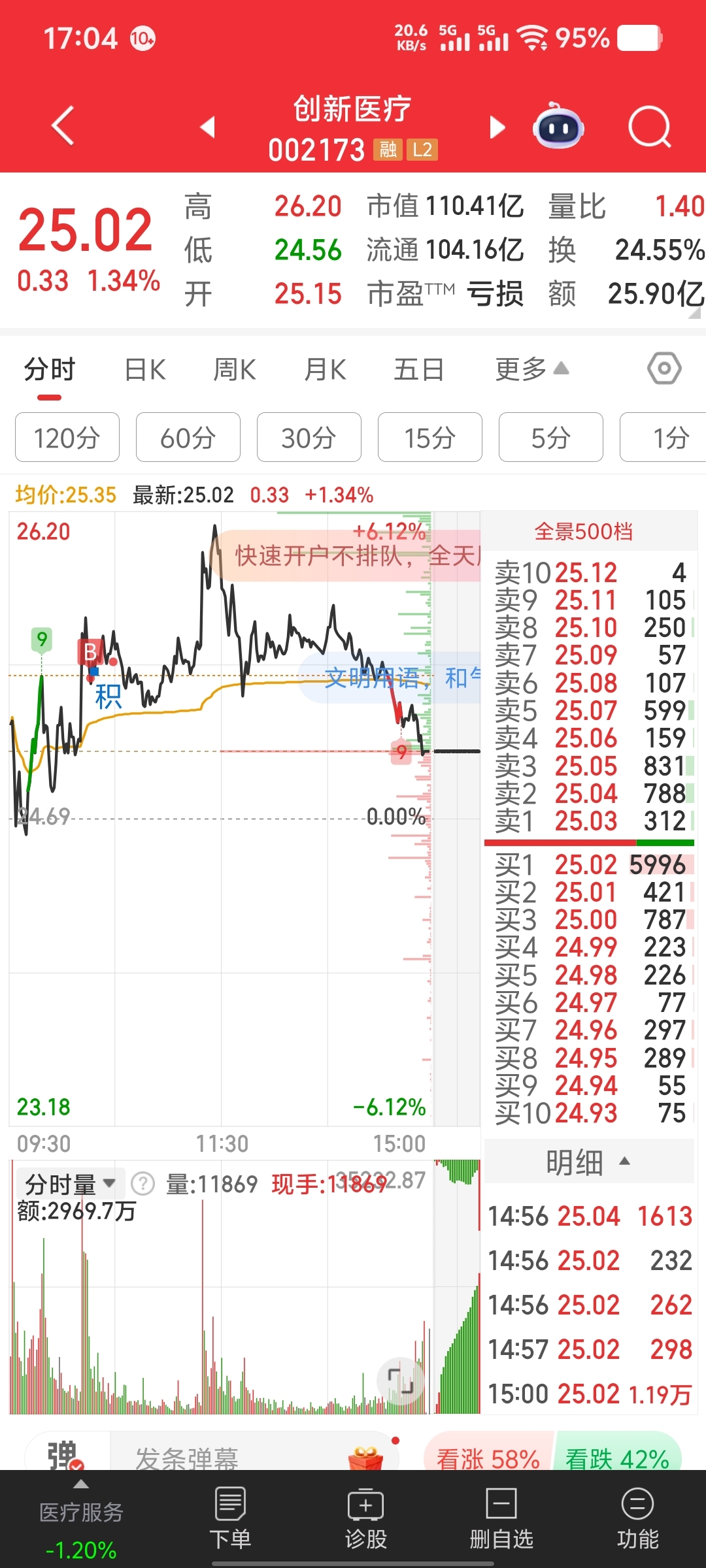 $创新医疗(SZ002173)$ 兄弟们对不起啦,本来今天涨停的,怪我