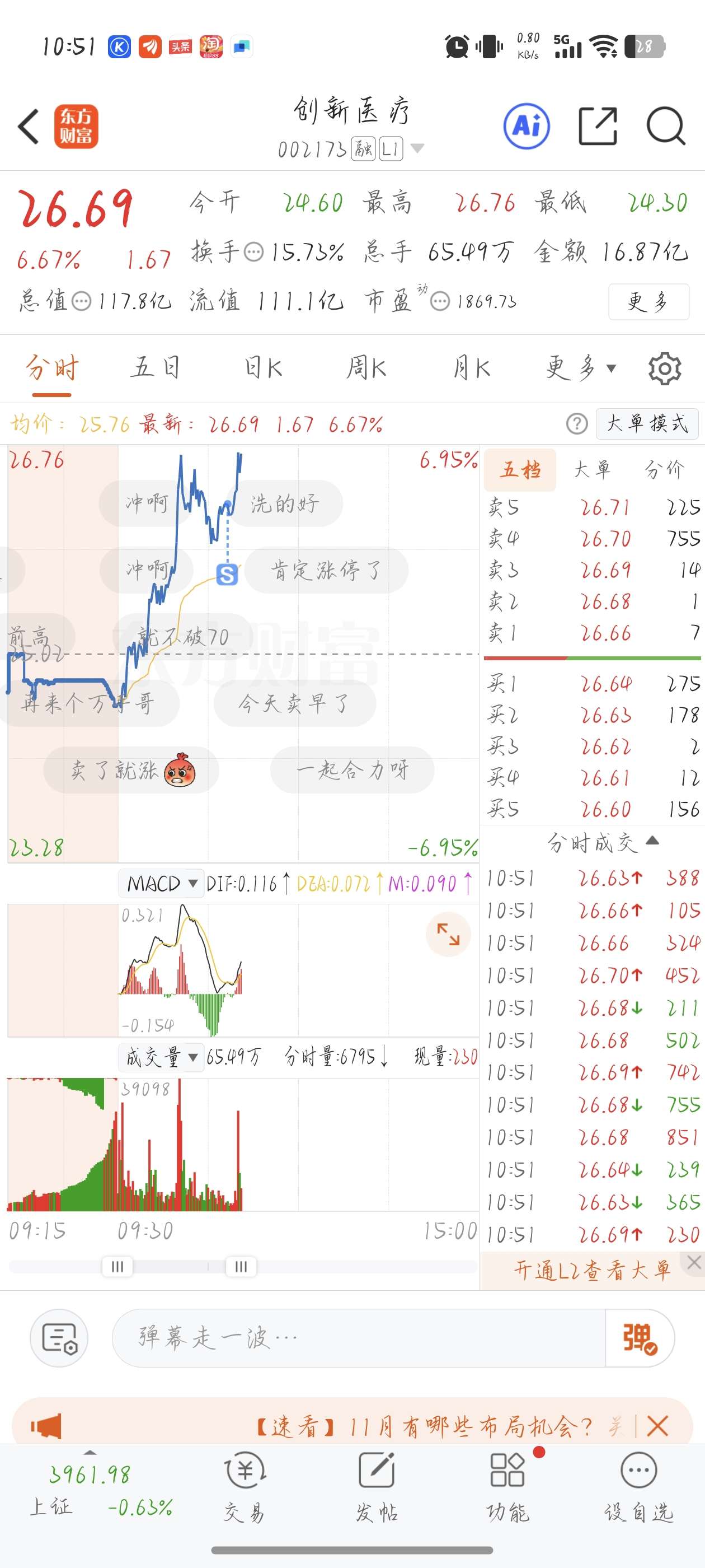 $创新医疗(SZ002173)$ 其他的事情我从未后悔过,唯独炒股炒股是我一生之中后悔最多的,后悔买少了,后悔没卖后悔又卖飞了