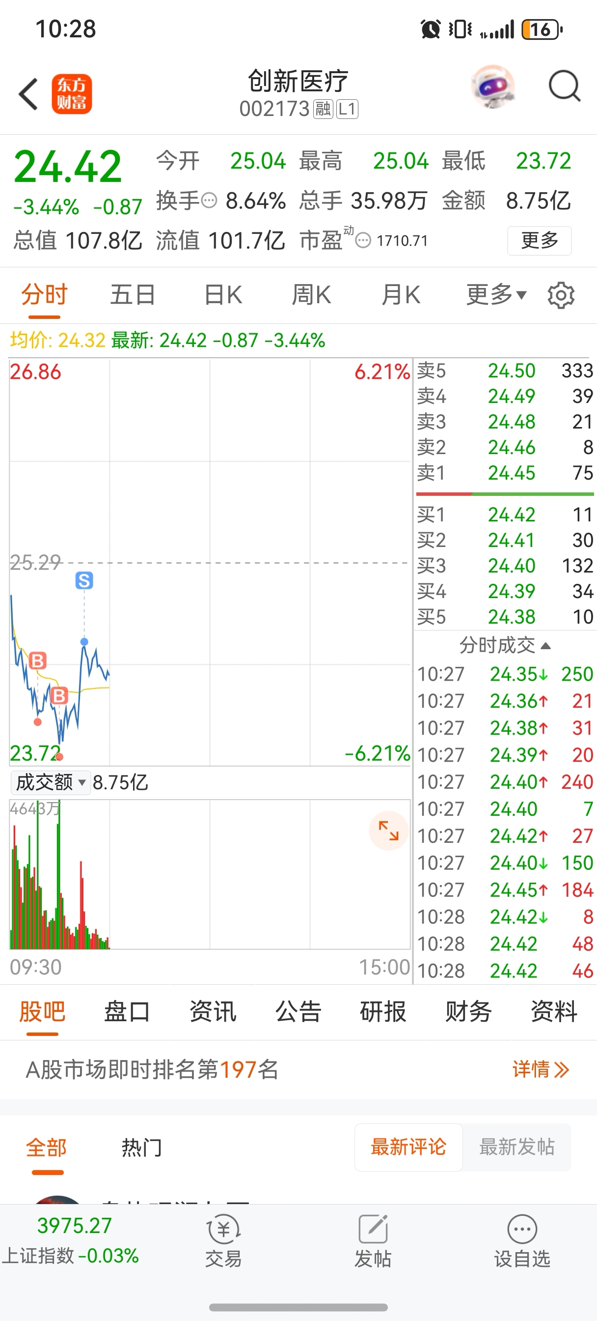 $创新医疗(SZ002173)$ 跟着主力高抛低吸吧,跌停就全仓