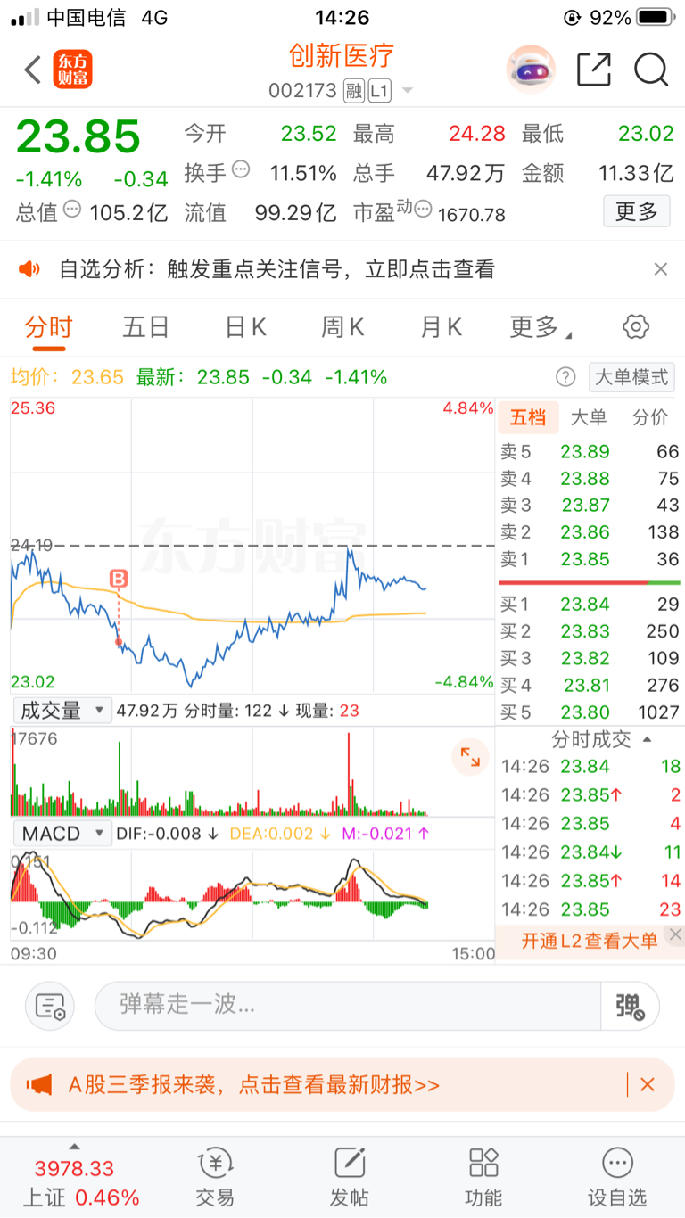 $创新医疗(SZ002173)$ 护盘成功