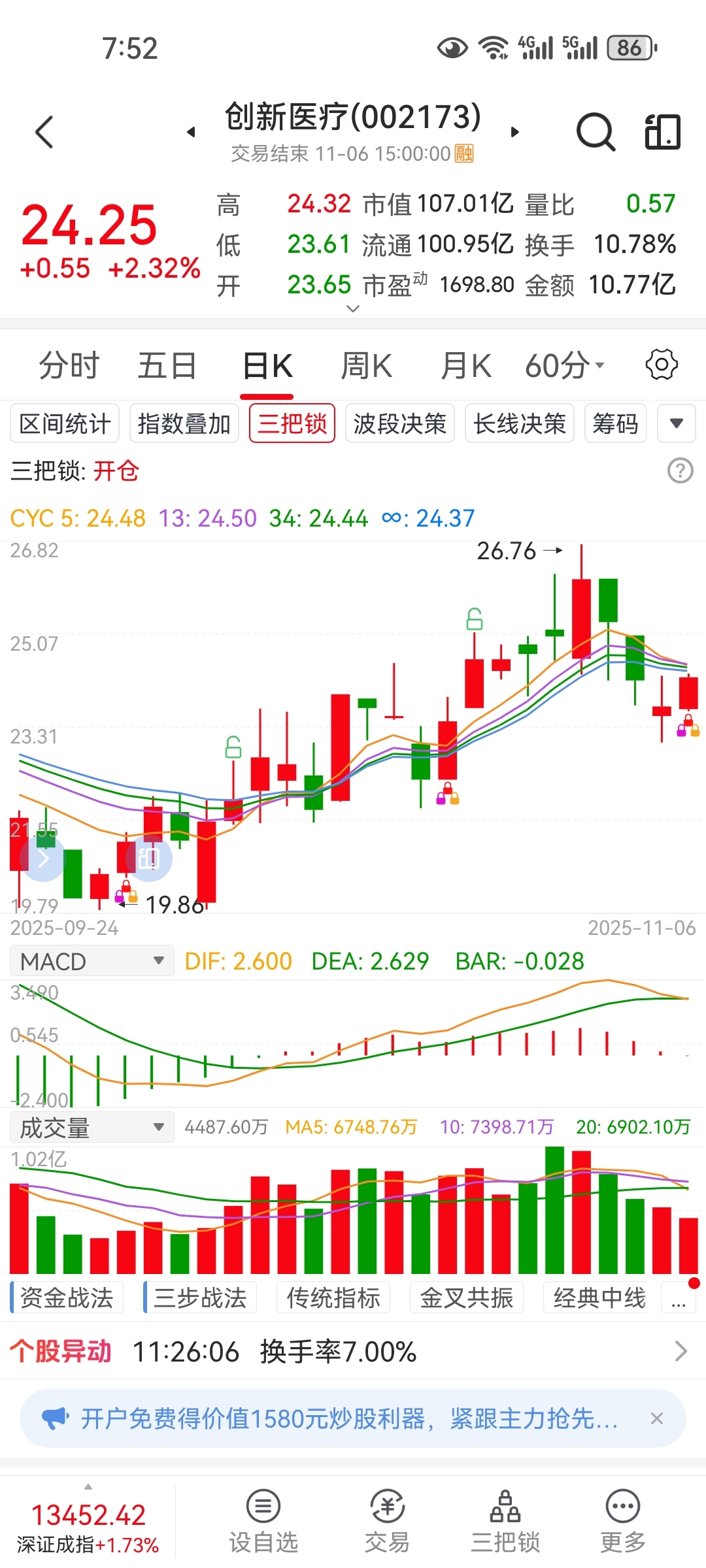 $创新医疗(SZ002173)$ 指南针3把锁指示买入,什么玩意儿!