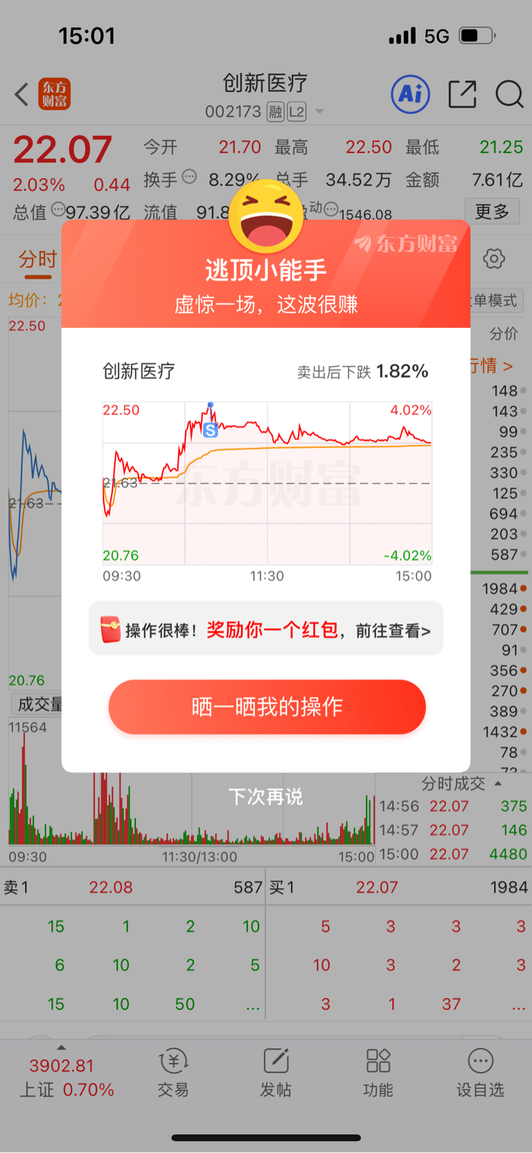 $创新医疗(SZ002173)$ 精准高位卖了一半 早知道都卖了