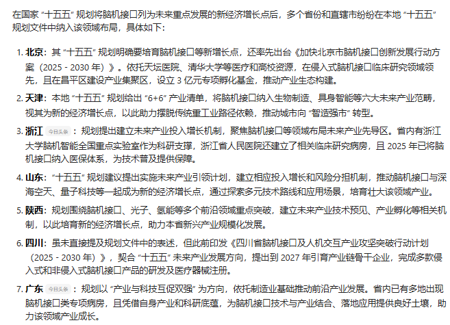 各地十五五规划陆续发布,脑机接口都作为了新增长点,期待创新能再创新高