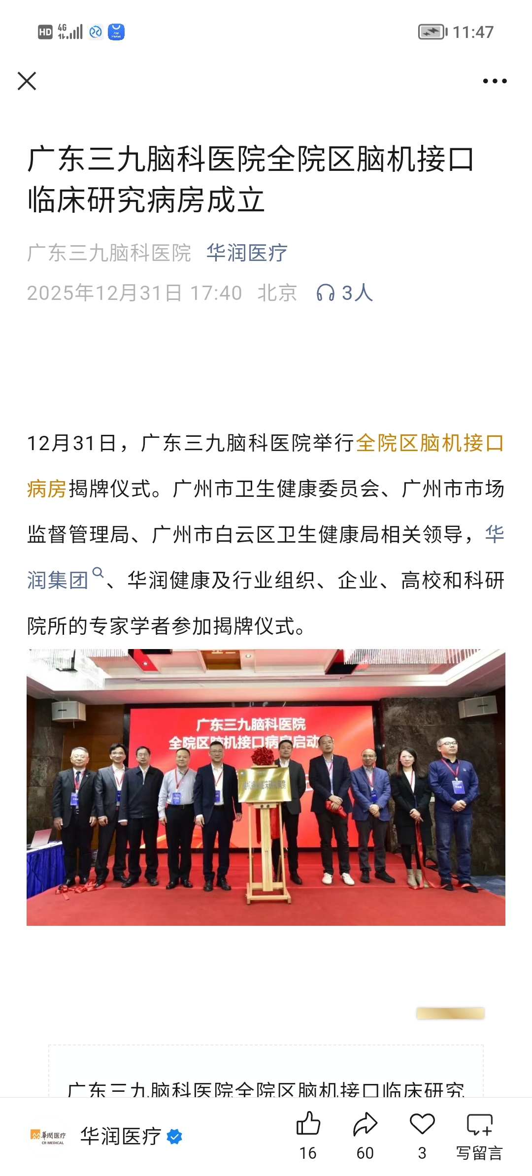 $创新医疗(SZ002173)$ 华润医疗才是脑机接口第一股,市盈率市净率高分红最安全