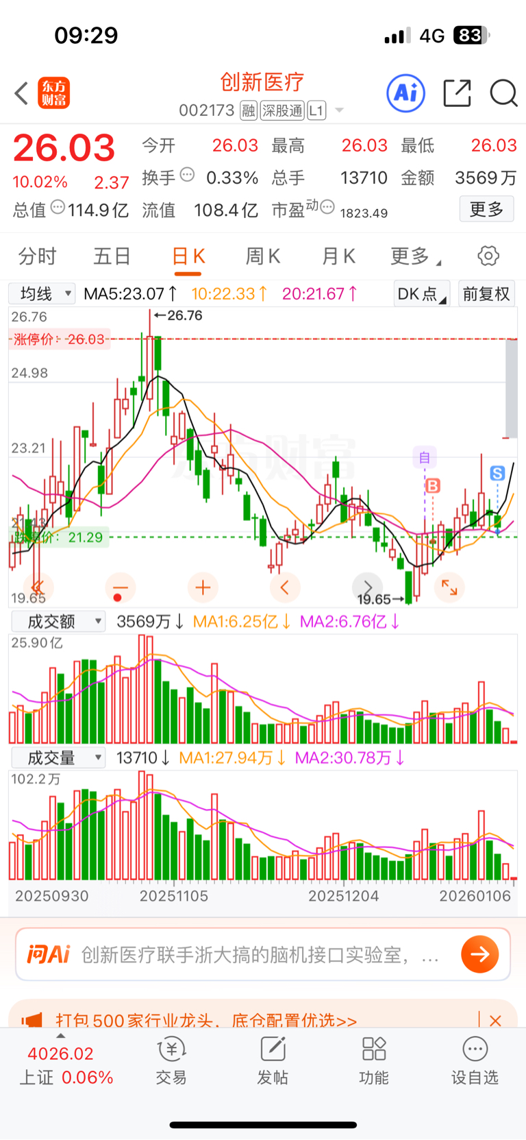 $创新医疗(SZ002173)$ 吐血啊