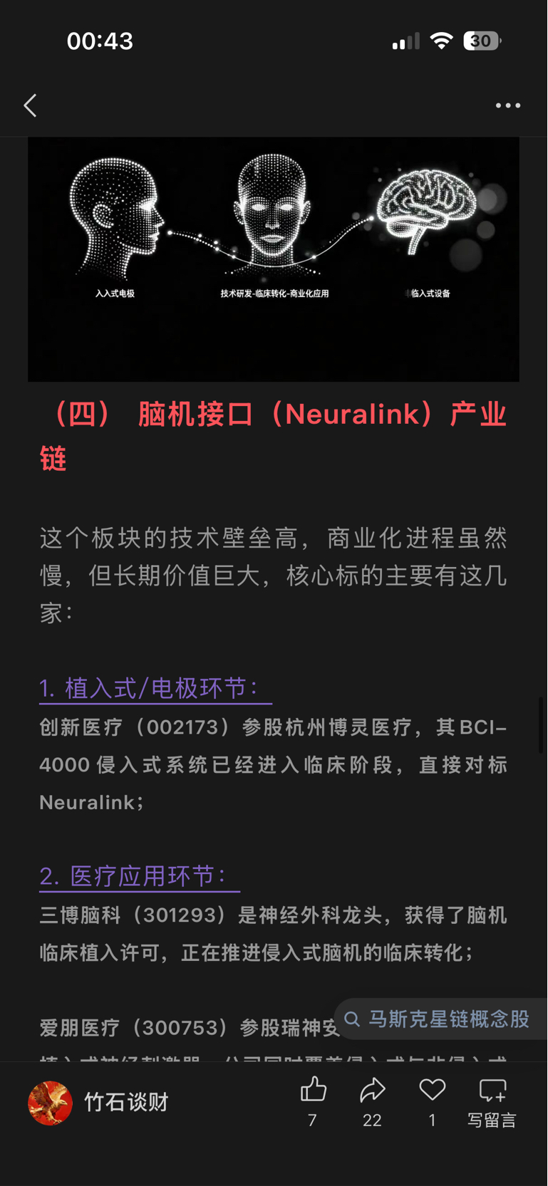 $创新医疗(SZ002173)$ $三博脑科(SZ301293)$ $南京熊猫(SH600775)$ 马斯克量产概念了!脑机接口!这讲的好好