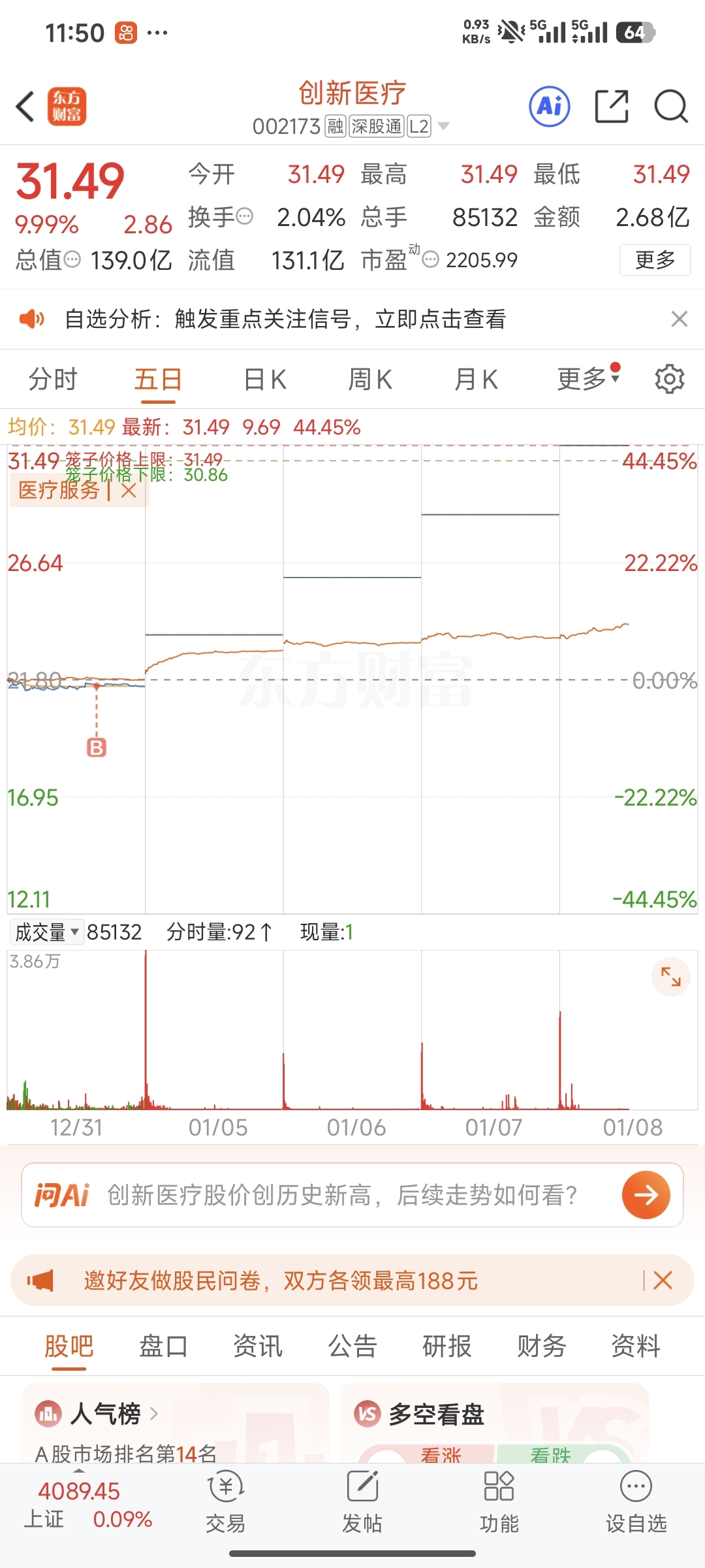 $创新医疗(SZ002173)$ 节前就看到这家伙最近要有动作,埋伏了一手