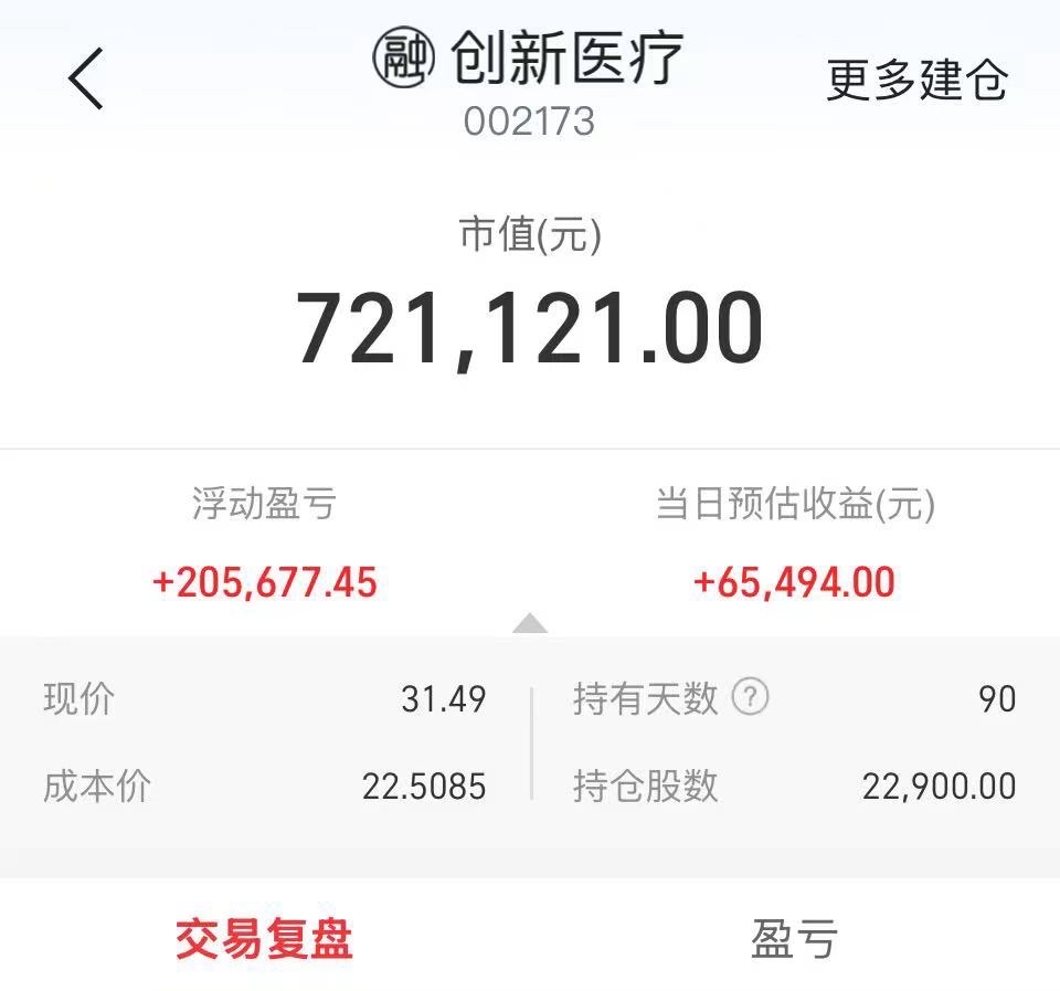 $创新医疗(SZ002173)$ 我先走一半!兄弟们加油!