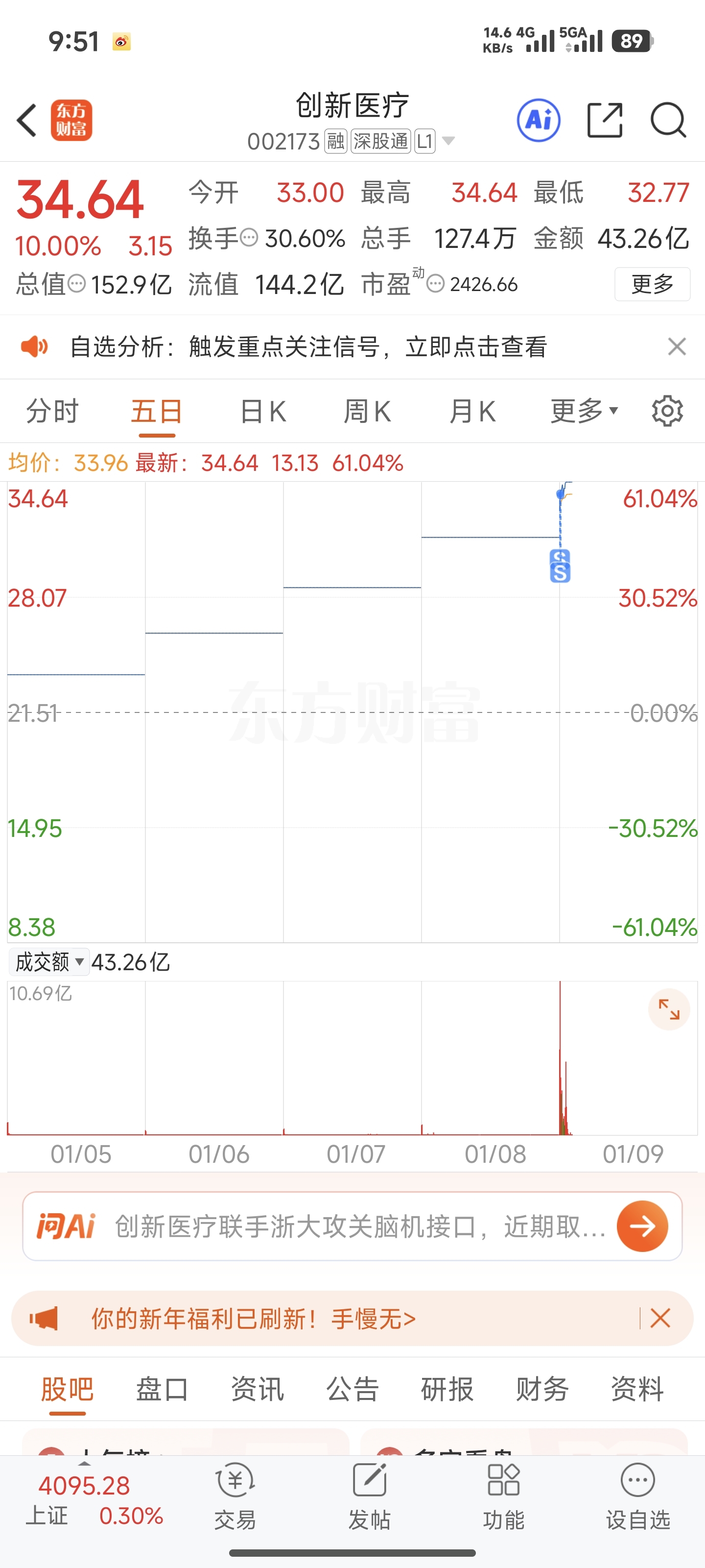 $创新医疗(SZ002173)$ 留下的兄弟们发财,我先走了,感谢。