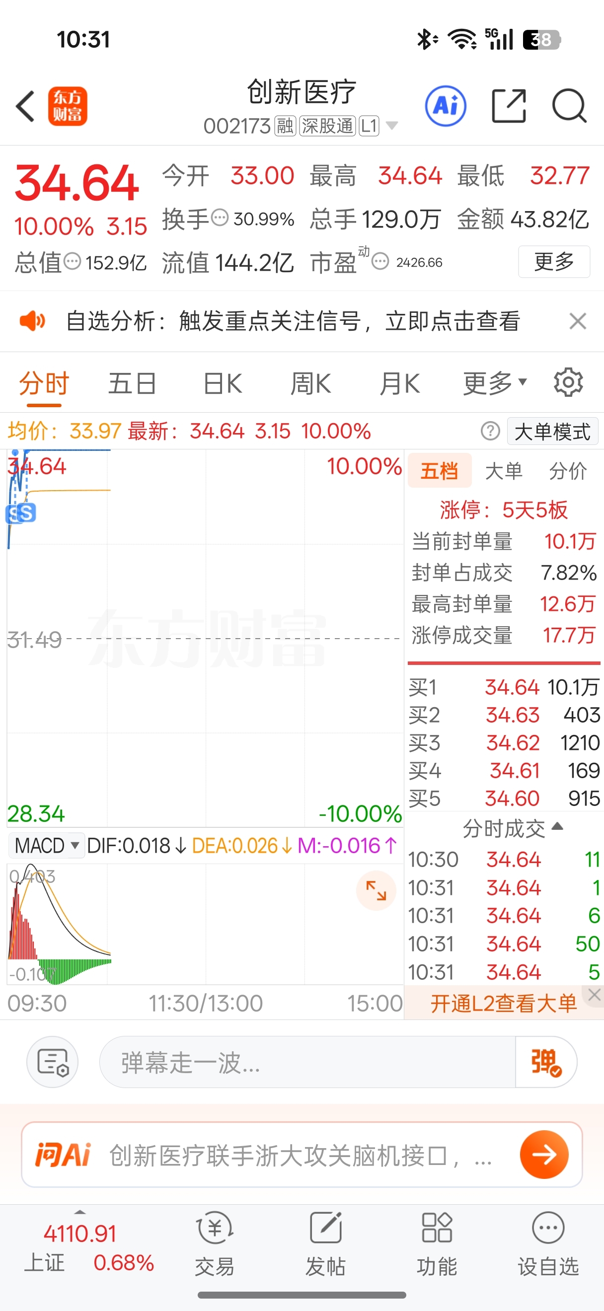 $创新医疗(SZ002173)$ 套牢三个月,吃了五个板,跑路唠,留下的进来的都发财,留个10手,看看下周什么个状态