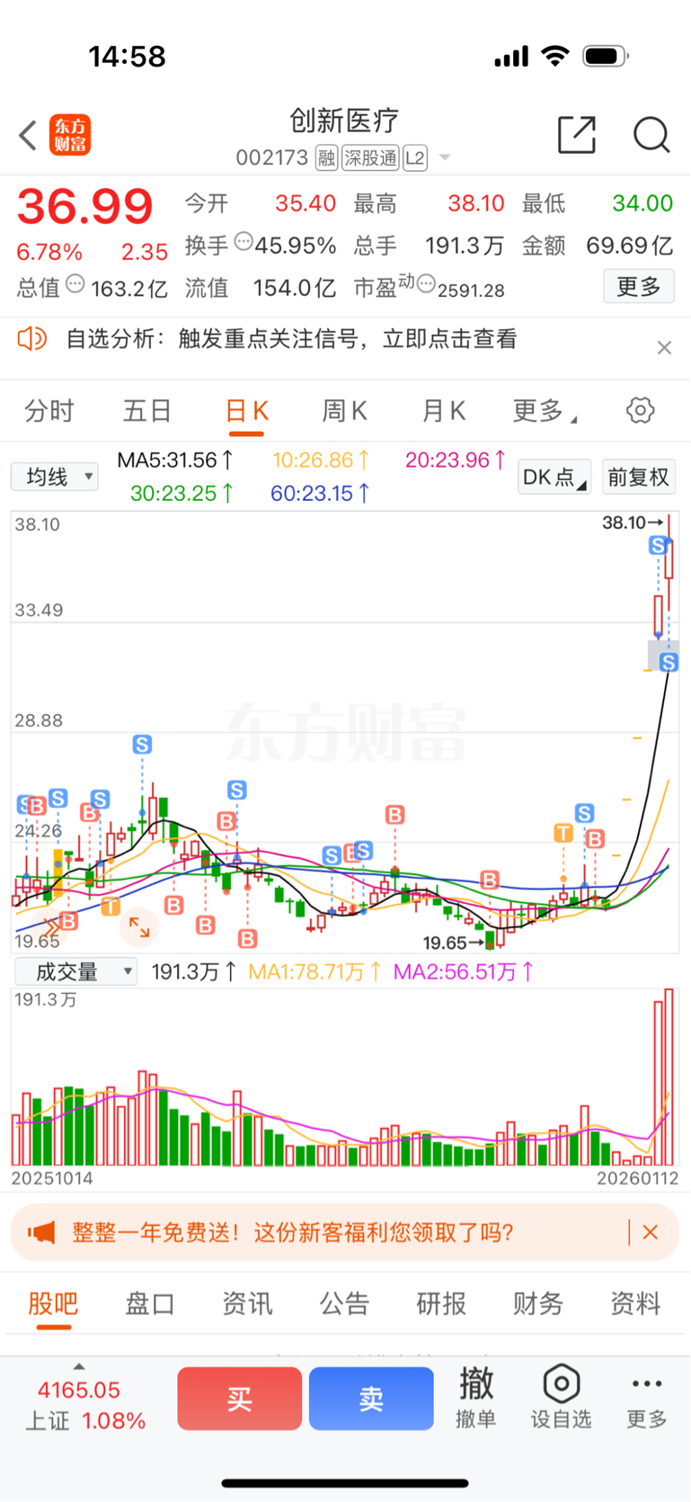 $创新医疗(SZ002173)$ 吃了60个点。够了。在留下的继续发财