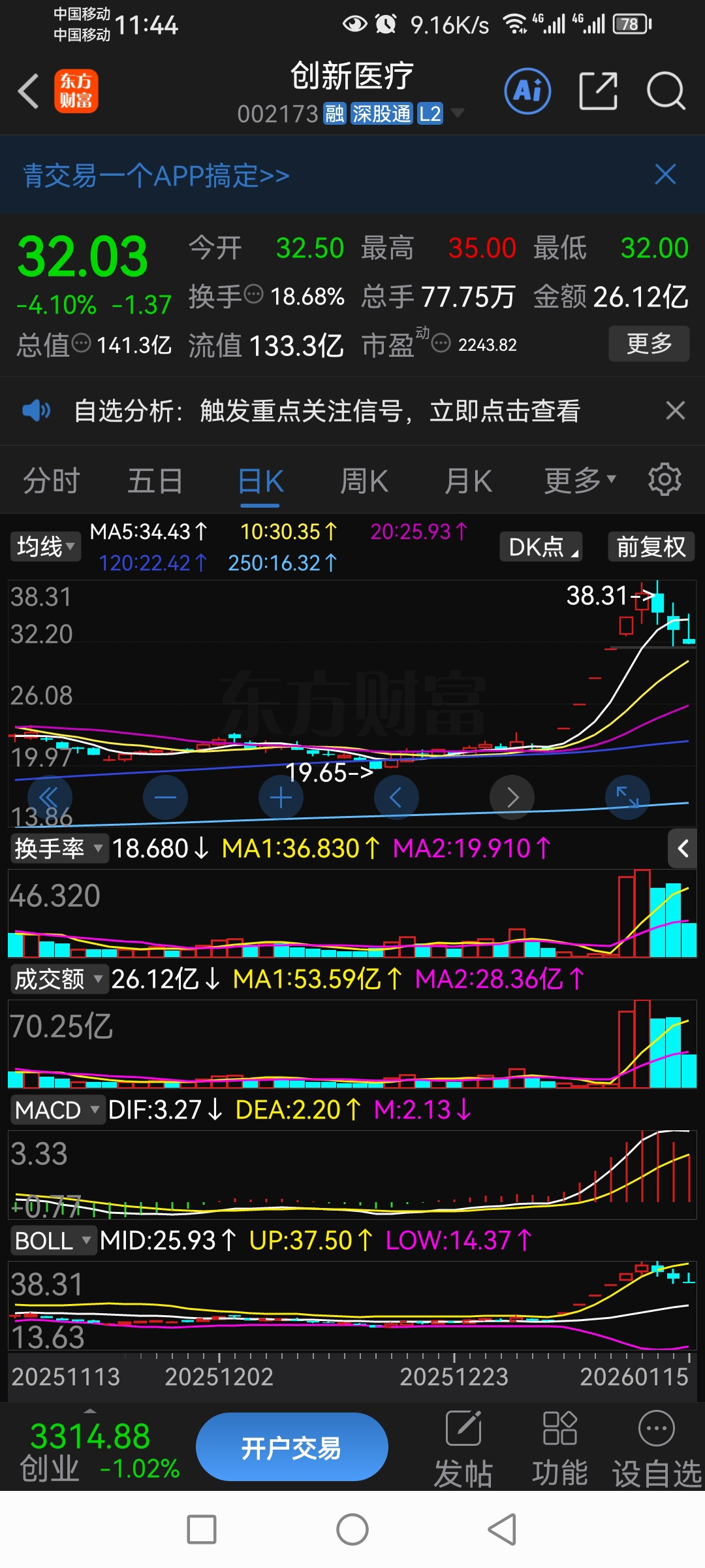 $创新医疗(SZ002173)$ 人脑工程板块今天下午或收盘可以大胆抄底上车,很多个股已经连续跌了2..3天跌幅都是10%以上,短线风险已释放,今天抄底博明天板块全体反弹赚取其6%的超短线利润