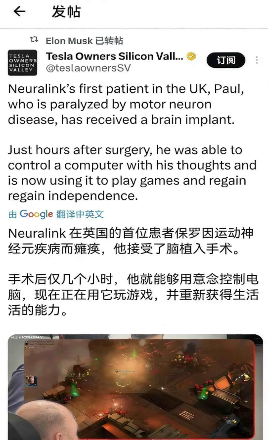 1月15日,马斯克旗下脑机接口Neuralink在英国的首位患者保罗患有运动神经元疾病而瘫痪,他接受了脑植入手术。