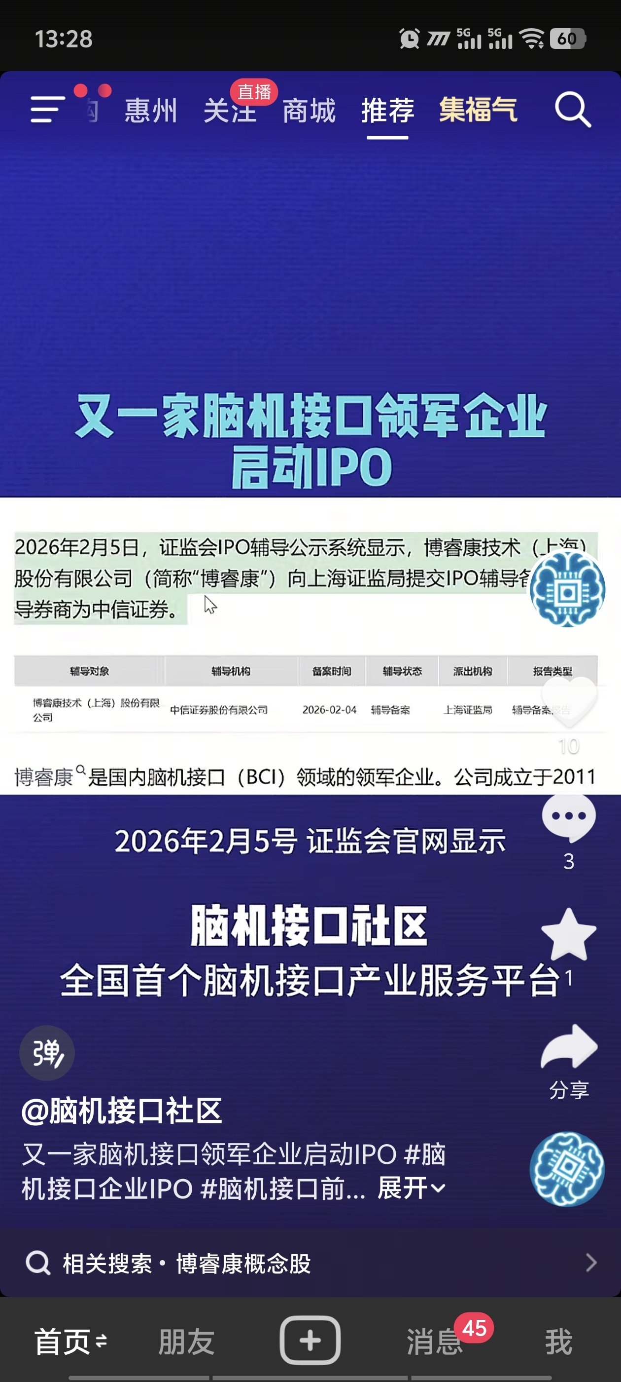 $创新医疗(SZ002173)$ 2月5日 又一家脑机接口公司准备启动ipo上市计划!