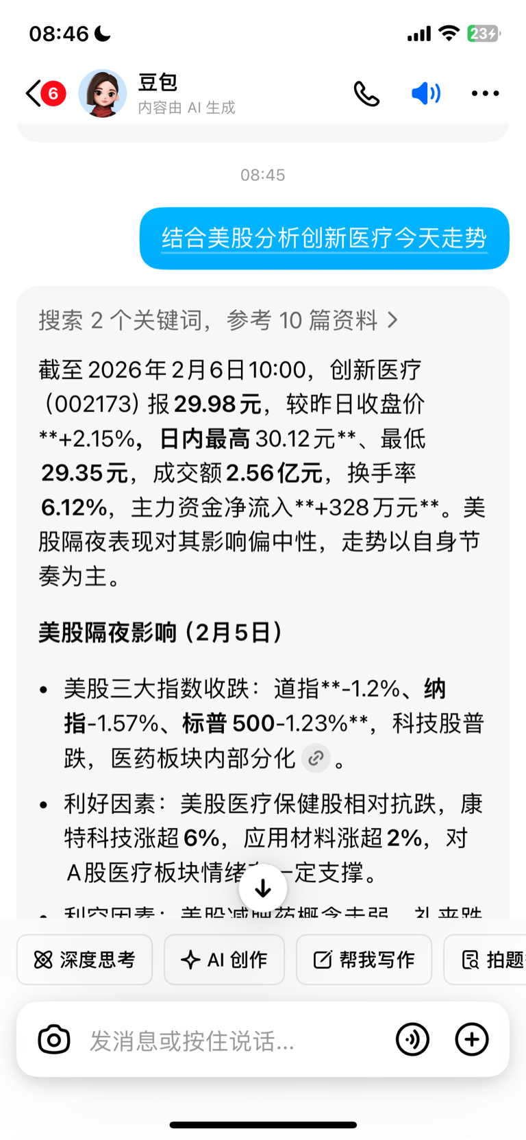 $创新医疗(SZ002173)$ 豆包好牛啊,8点多问的居然都给到10点的数据了
