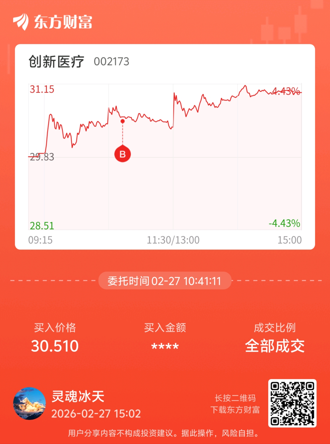 温馨提示: 1.根据《证券法》规定,禁止编造、传播虚假信息或者误导性信息,扰乱证券市场;2.用户在本社区发表的所有资料、言论等仅代表个人观点,与本网站立场无关,不对您构成任何投资建议。用户应基于自己的独立判断,自行决定证券投资并承担相应风险。《东方财富社区管理规定》
