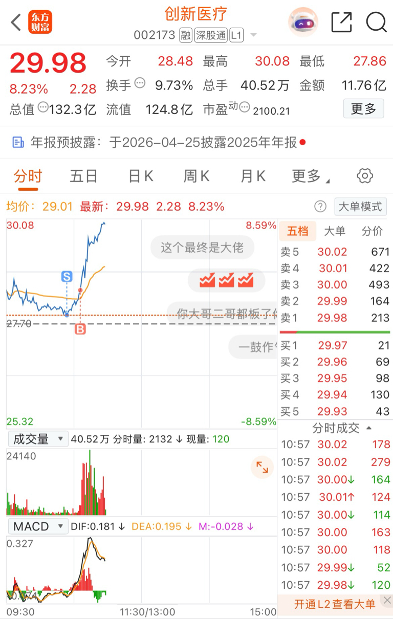 $创新医疗(SZ002173)$ 差点就被甩下车