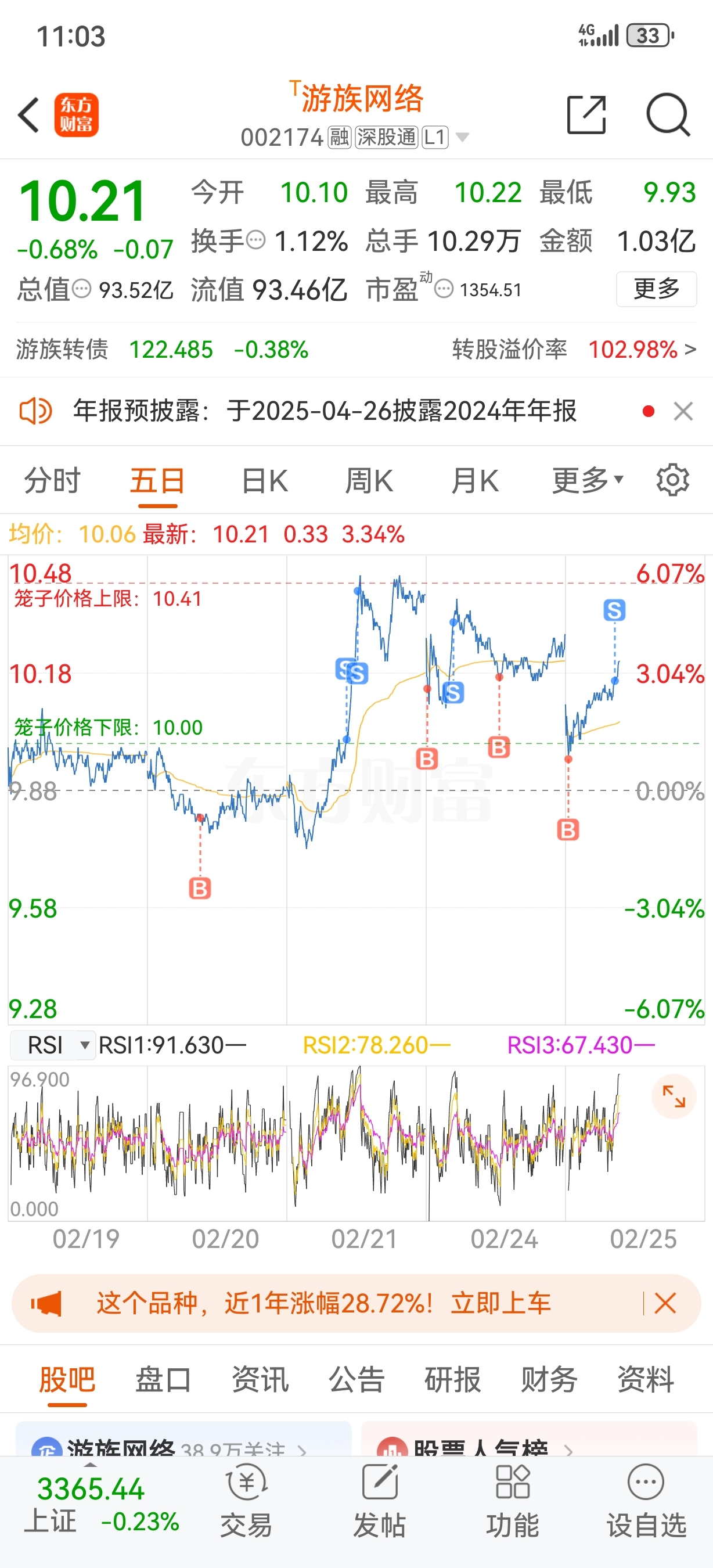 $游族网络(SZ002174)$ 每天做做T,涨了卖,跌了补,希望把你成本做成负数。