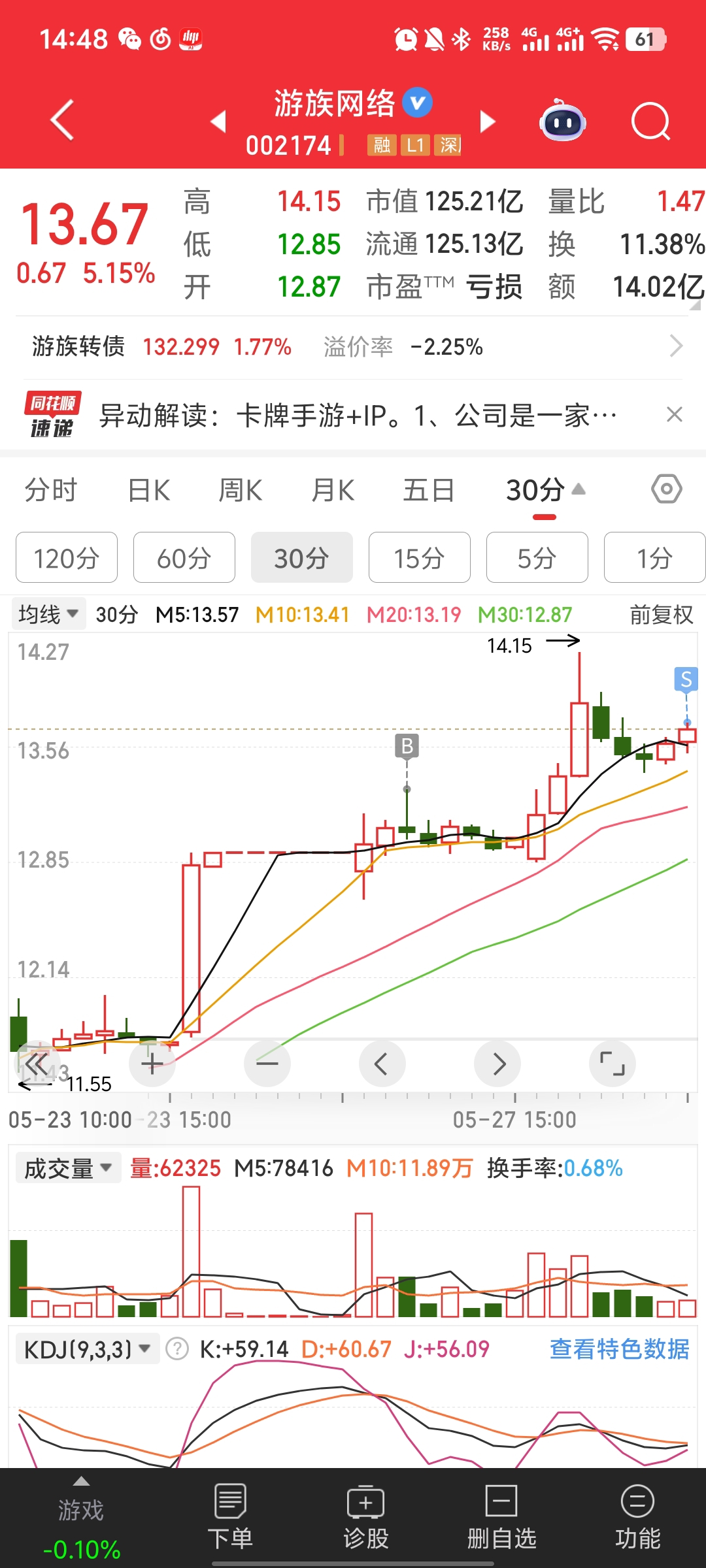 $游族网络(SZ002174)$ 跑了 昨天买的 今天全清了 希望不要卖飞