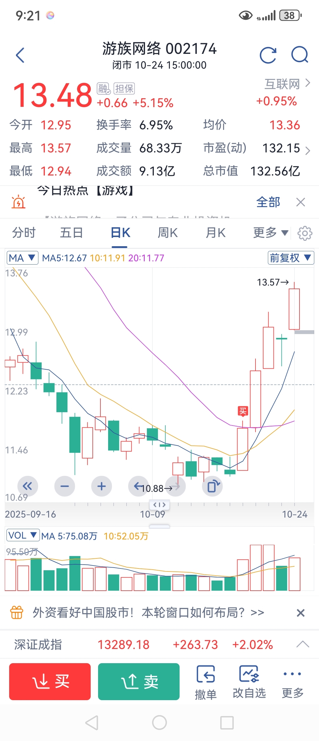 $游族网络(SZ002174)$ 它来了,行情在前,消息在后,你们还好吗?