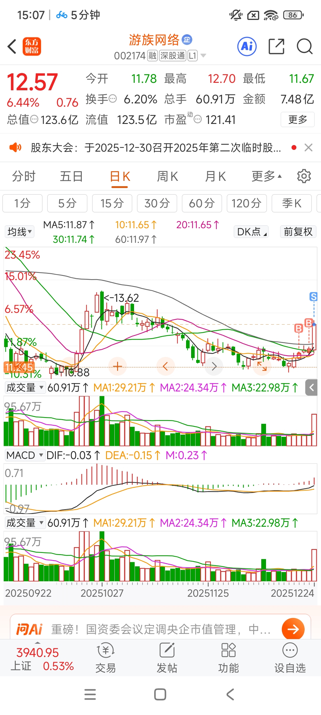 $游族网络(SZ002174)$ 回了一点血