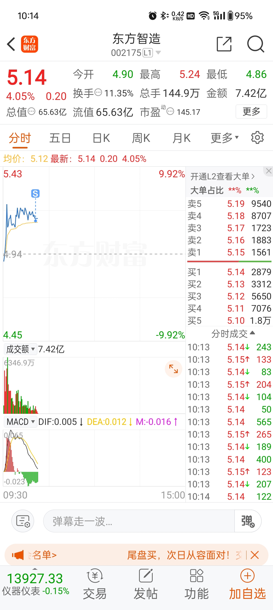$东方智造(SZ002175)$ 想买回来,感觉会涨停,心痒痒的