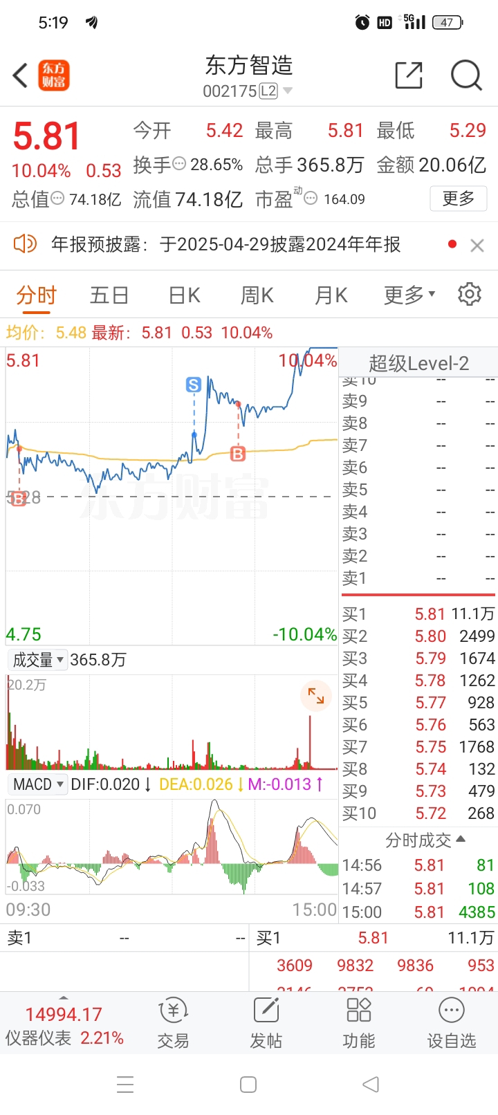 $东方智造(SZ002175)$ 明天怎么操作