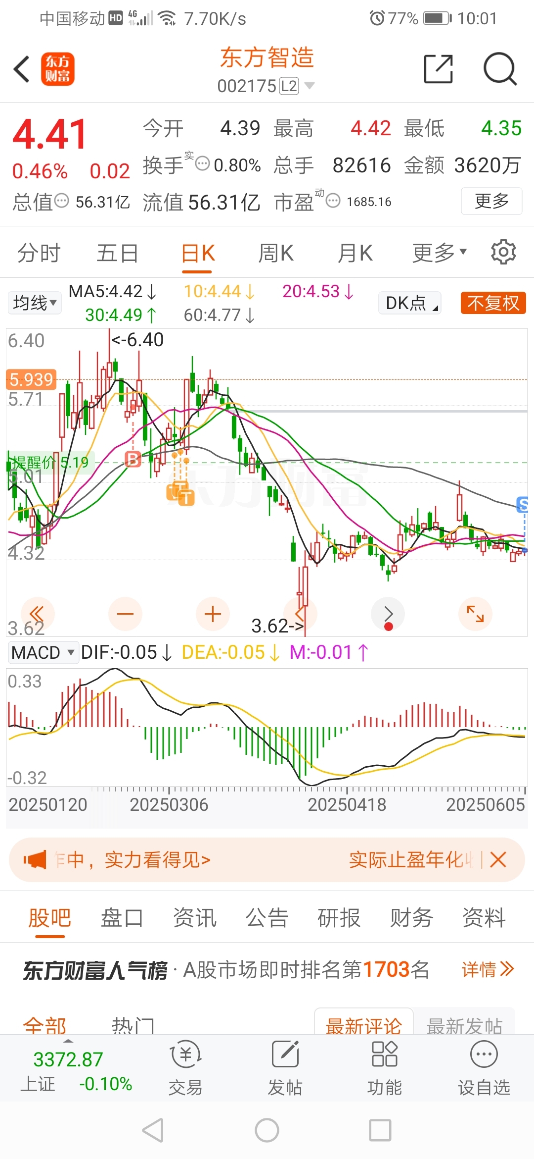 $东方智造(SZ002175)$ 割肉了,你满意啦,可以拉了