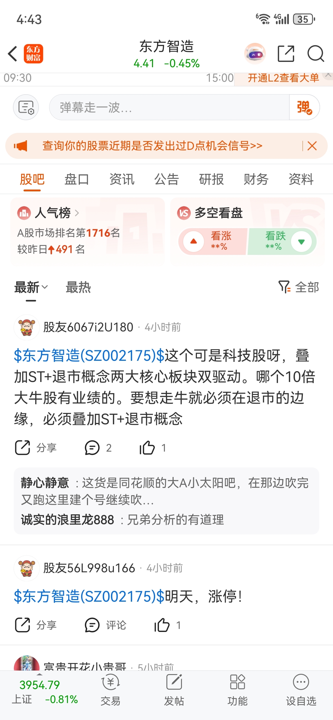温馨提示: 1.根据《证券法》规定,禁止编造、传播虚假信息或者误导性信息,扰乱证券市场;2.用户在本社区发表的所有资料、言论等仅代表个人观点,与本网站立场无关,不对您构成任何投资建议。用户应基于自己的独立判断,自行决定证券投资并承担相应风险。《东方财富社区管理规定》