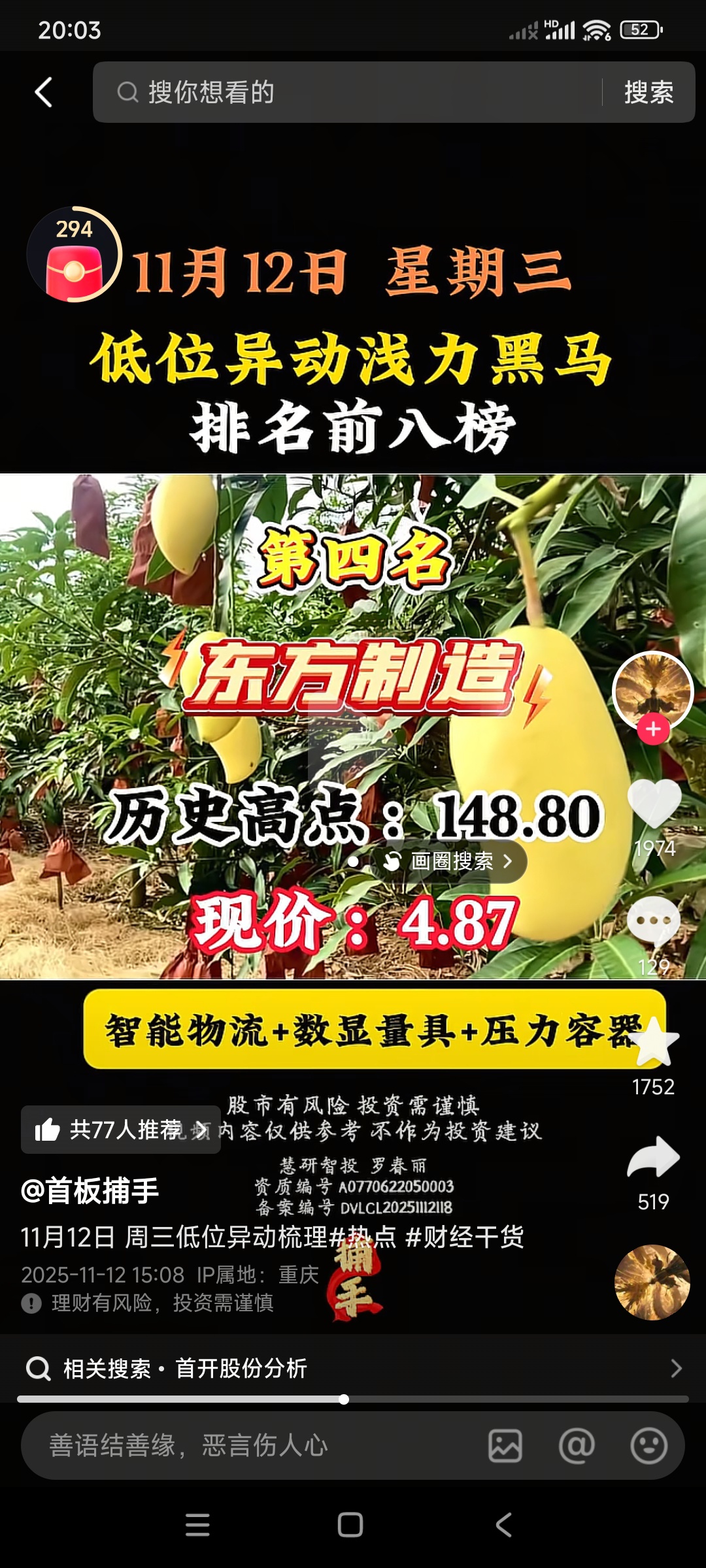 $东方智造(SZ002175)$ 抖音开始吹票了