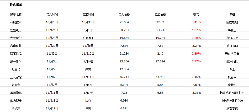 先导智能300450:公司锂电设备领域市占率第一,全球唯一拥有完整自主知识产权的锂电整线解决方案提供商,自研了全新技术光伏电池智能工厂产线, 基本面还是不错的,股价从高位调整下来,现在有企稳的迹象,最近三个交易日也是小碎步往上走,下方多条均线有较好的支撑,十一月份还是值得研究,有接力有望走出波段性的行情。