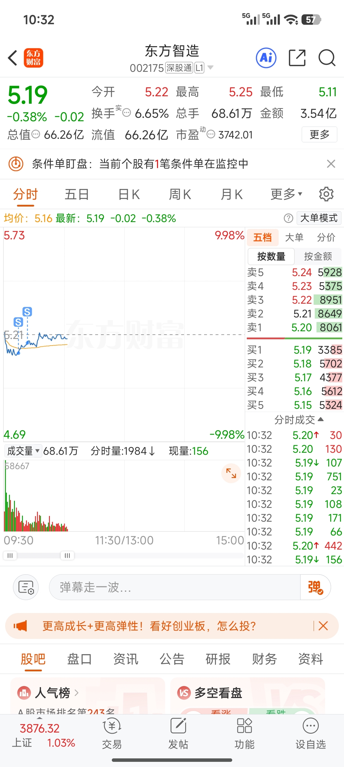 $东方智造(SZ002175)$ 回吐一个点利润,清仓留下的发财