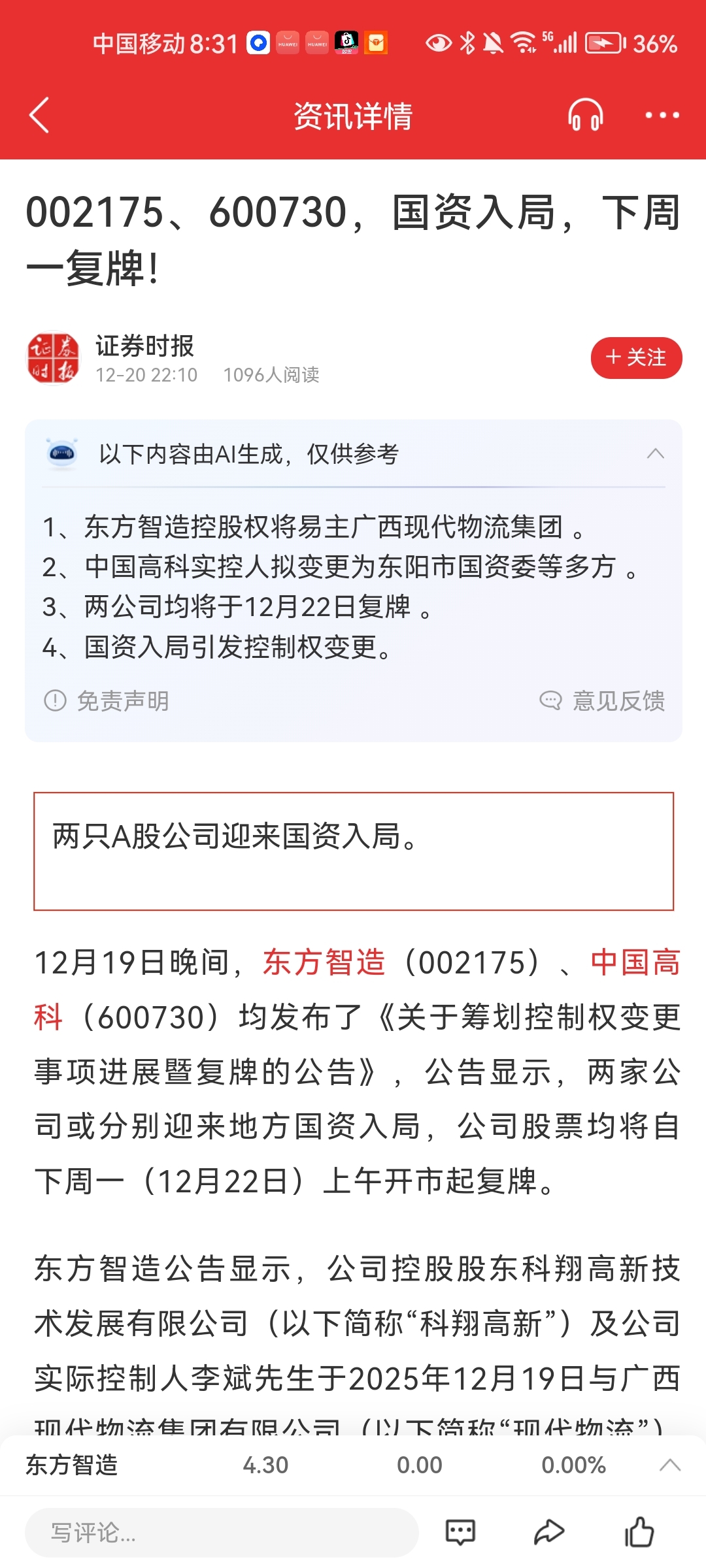 $东方智造(SZ002175)$ 国资入局了,不要慌