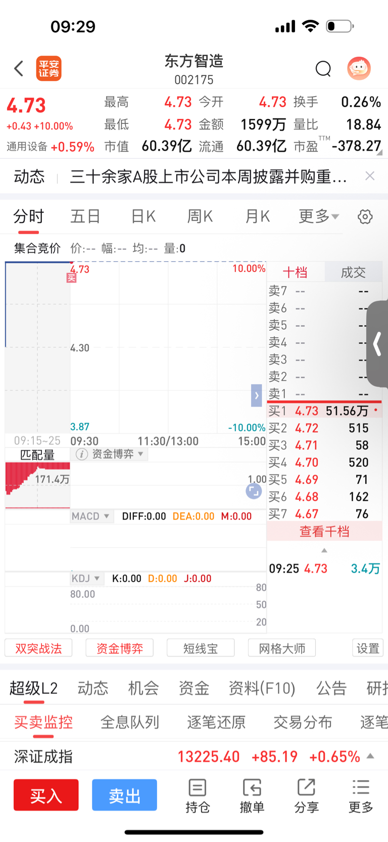 $东方智造(SZ002175)$ 上周五挂单买进,不知道是福还是祸,听天由命,