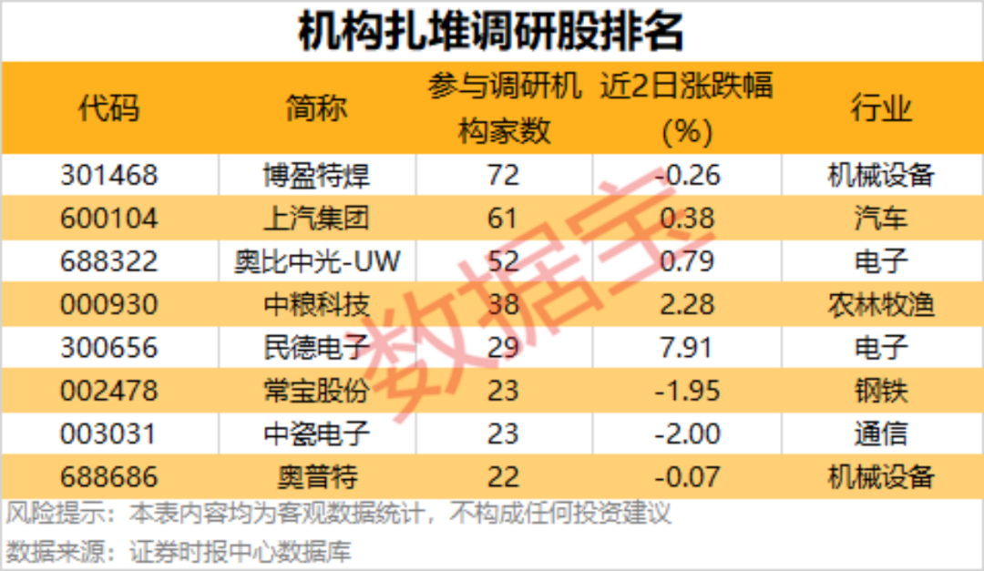 8家公司获机构扎堆调研
