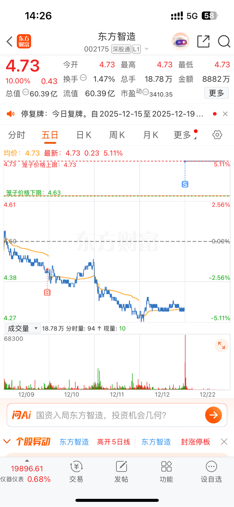 $东方智造(SZ002175)$ 心里没底,落袋为安