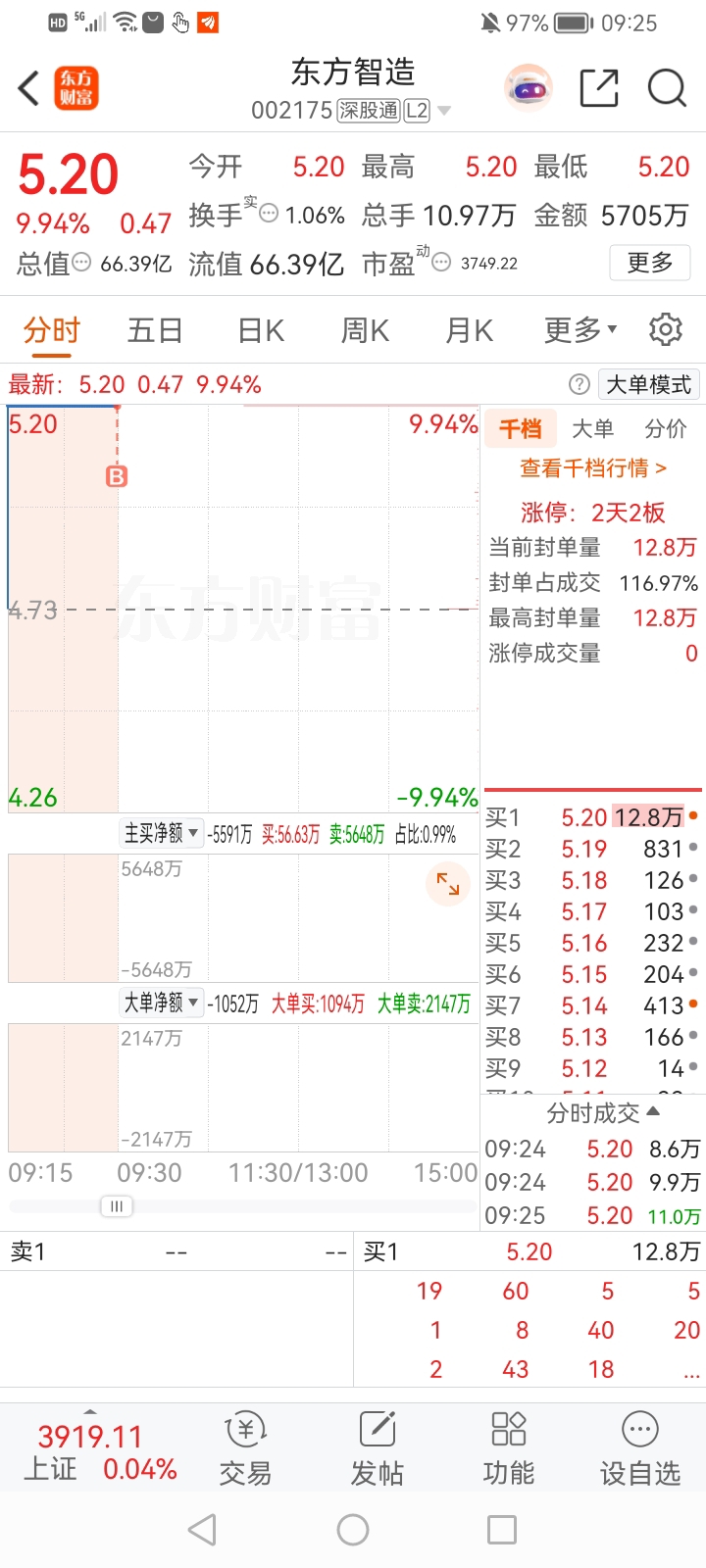 $东方智造(SZ002175)$ 隔夜单忘记撤单了,打板进来了,千万别开板啊