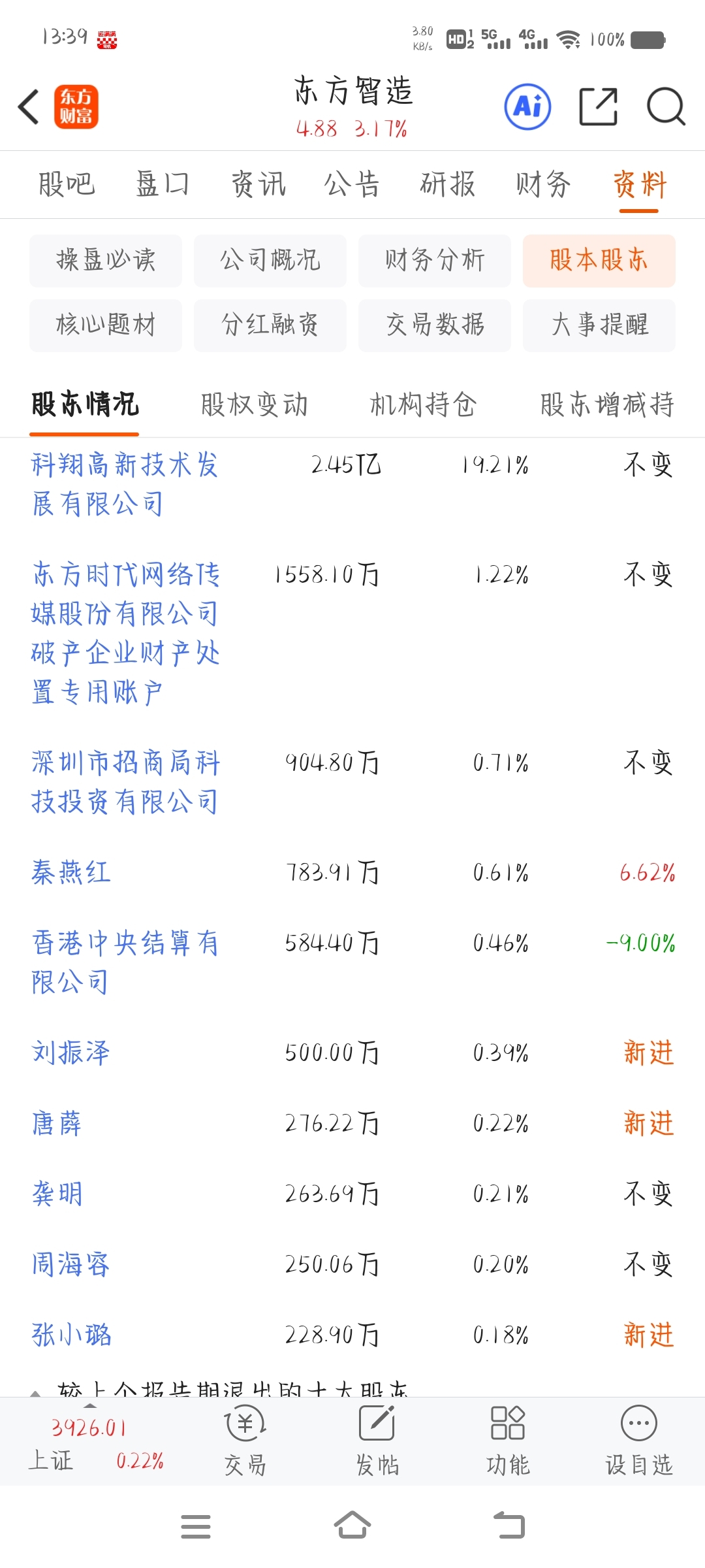 $东方智造(SZ002175)$ 这票哪有主力啊?全是散户,散户不坚定,筹码分散