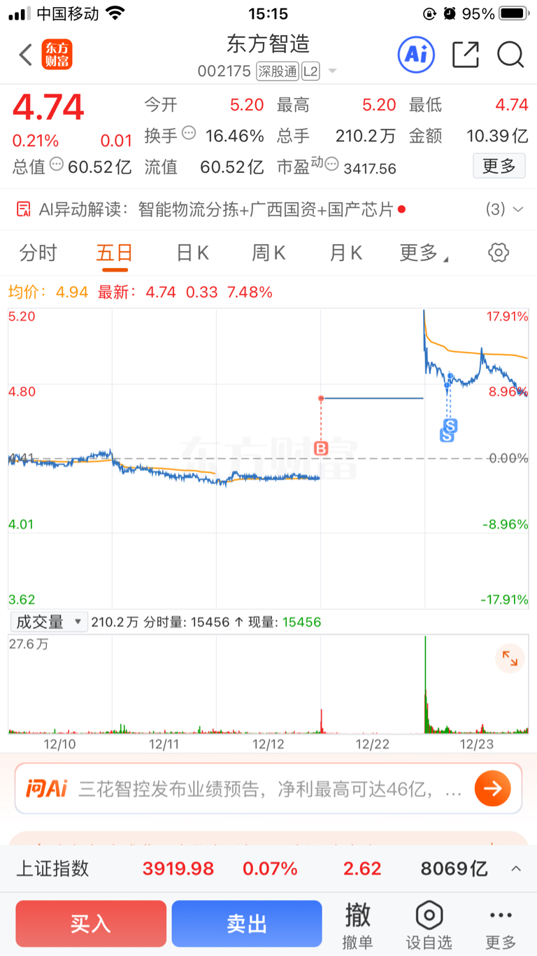 $东方智造(SZ002175)$ 白忙活了,还好不亏