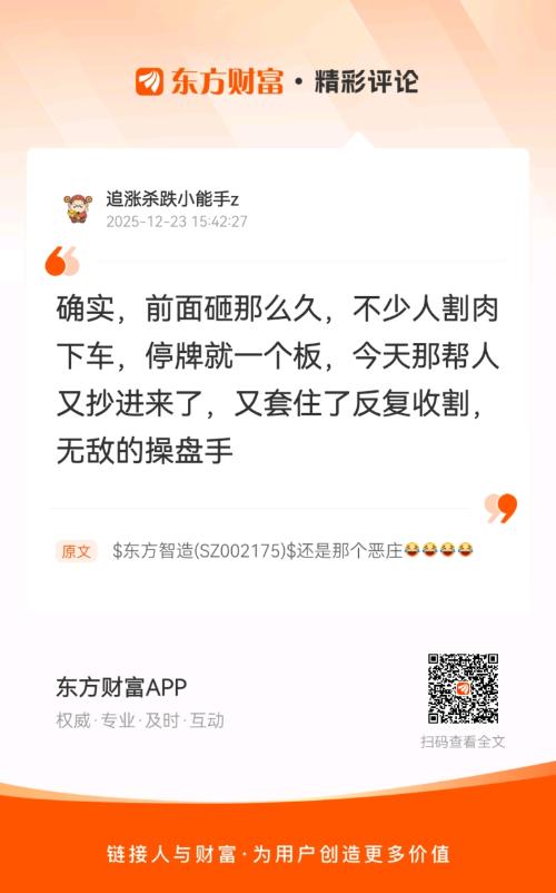 //@追涨杀跌小能手z :确实,前面砸那么久,不少人割肉下车,停牌就一个板,今天那帮人又抄进来了,又套住了反复收割,无敌的操盘手