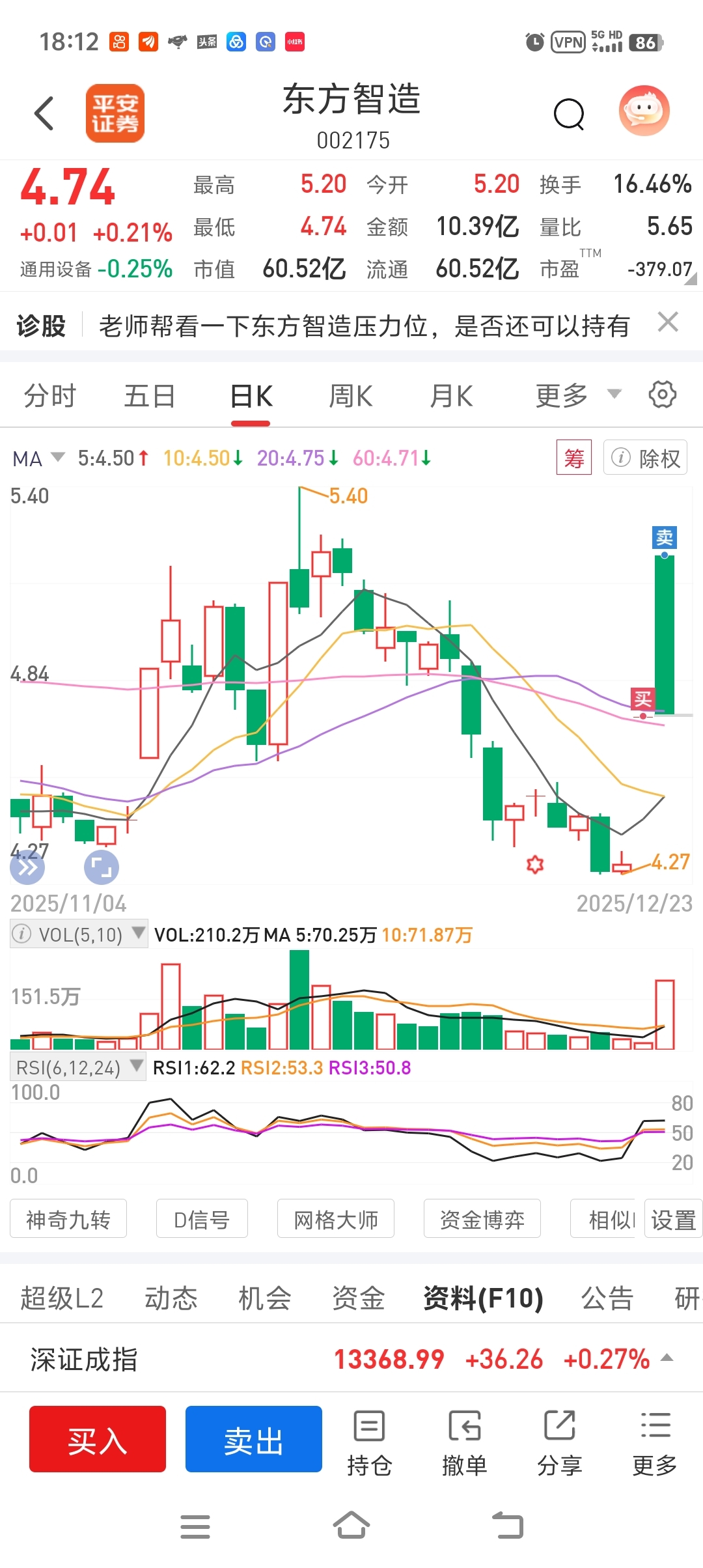 $东方智造(SZ002175)$ 明天最少跌5个点,水下5个点以下买入