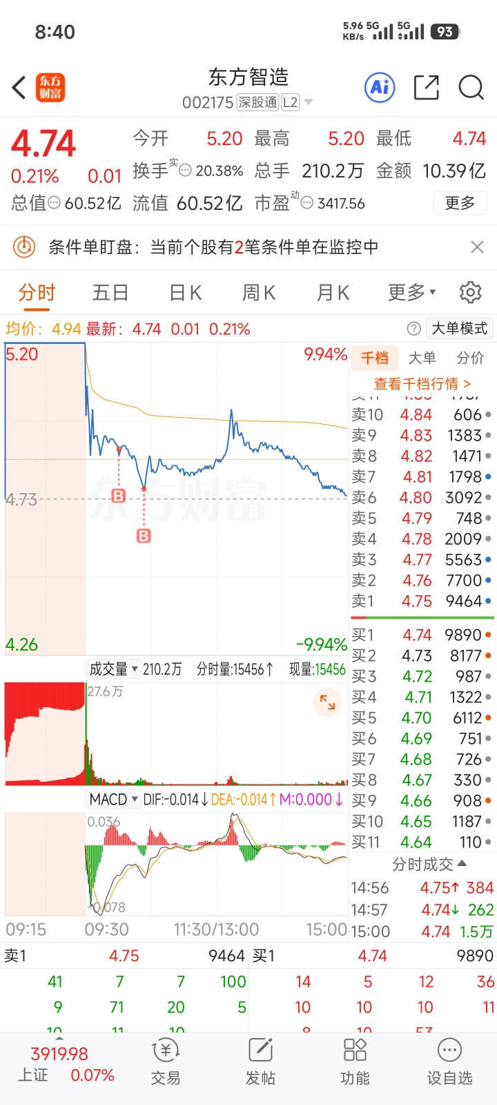 $东方智造(SZ002175)$ 下午的时候白高兴了