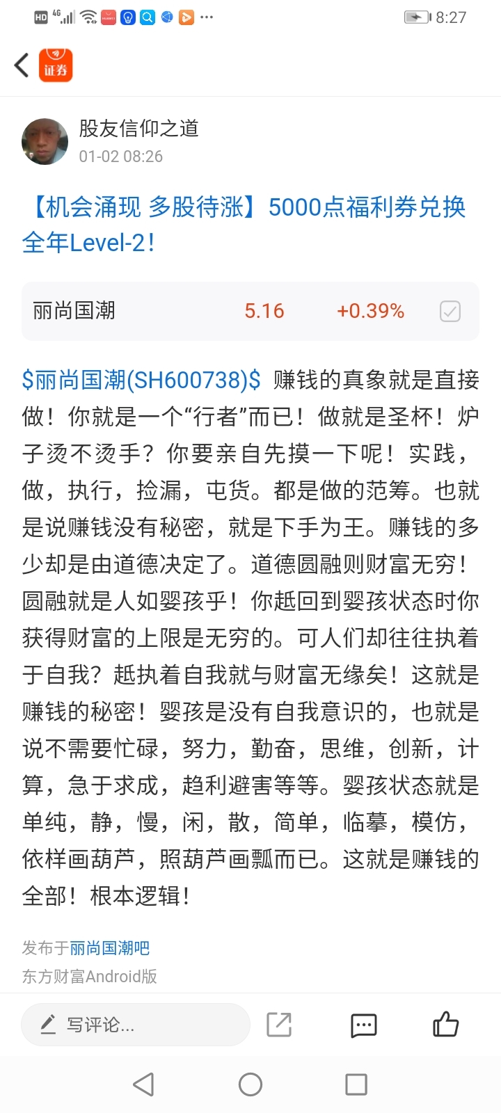 温馨提示: 1.根据《证券法》规定,禁止编造、传播虚假信息或者误导性信息,扰乱证券市场;2.用户在本社区发表的所有资料、言论等仅代表个人观点,与本网站立场无关,不对您构成任何投资建议。用户应基于自己的独立判断,自行决定证券投资并承担相应风险。《东方财富社区管理规定》